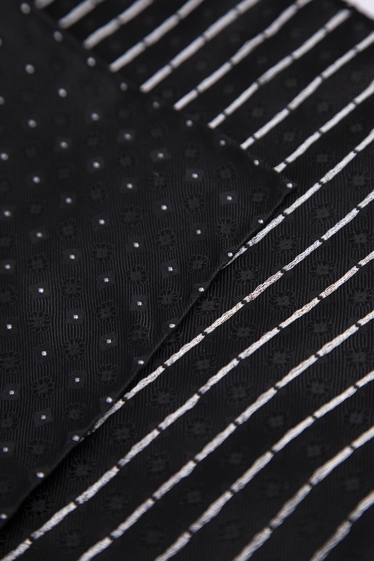 Model pochodzi z kolekcji jubileuszowej z okazji 20-lecia marki, co podkreśla jego unikatowy charakter oraz dbałość o każdy detal. Czarna tkanina została wzbogacona subtelnym mikrowzorem w postaci drobnych, białych punktów, które dodają elegancji, a jednocześnie zachowują uniwersalność dodatku.