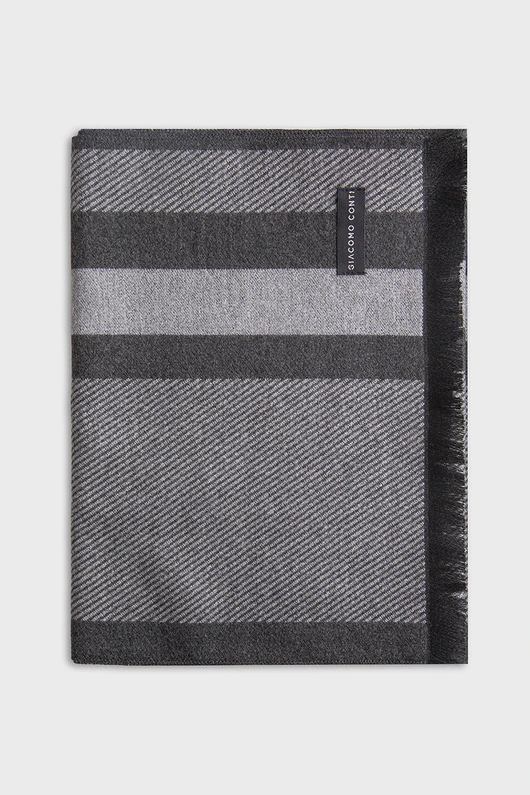 Stylowy design oparty na harmonijnym zestawieniu pasków nadaje całości charakteru i sprawia, że szal staje się efektownym, ale nienachalnym elementem garderoby. Delikatne frędzle na zakończeniach dodają mu lekkości i podkreślają jego elegancki charakter.