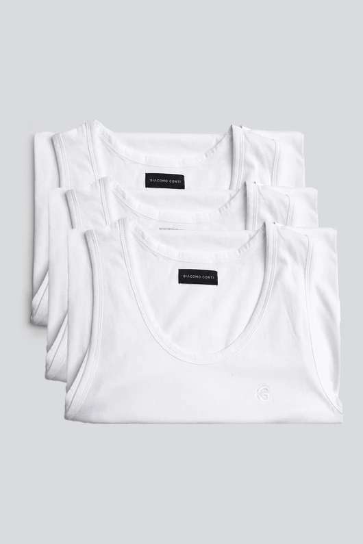Zestaw 3 białych, bawełnianych podkoszulków męskich od Giacomo Conti to idealna propozycja dla Panów ceniących minimalizm, wygodę i wysoką jakość na co dzień.