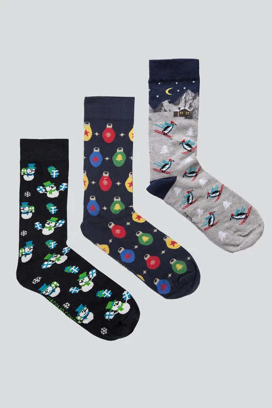 Wyjątkowy zestaw skarpet świątecznych to idealny prezent dla każdego mężczyzny. Trzy modele przyozdobione unikatowym, zimowo-świątecznym motywem to tegoroczny must - have.