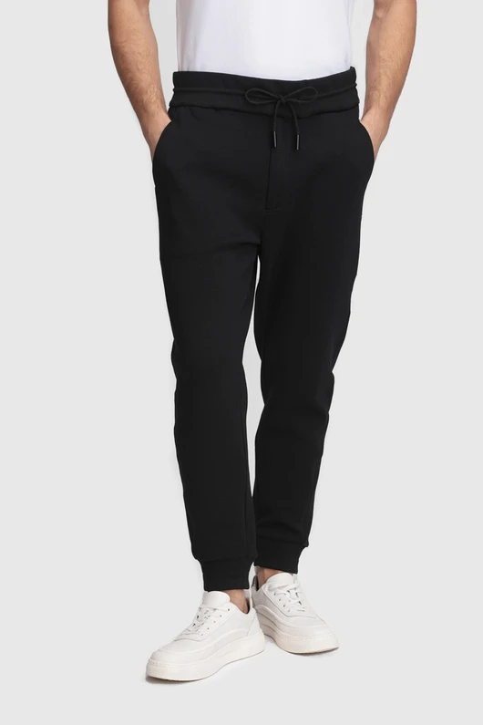 Klasyczny czarny kolor podkreśla nowoczesny, ponadczasowy charakter modelu, czyniąc go idealnym wyborem zarówno do codziennych stylizacji, jak i podczas aktywnego wypoczynku. Elastyczna talia regulowana sznurkiem oraz praktyczne ściągacze przy nogawkach gwarantują swobodę ruchów i pełną funkcjonalność.