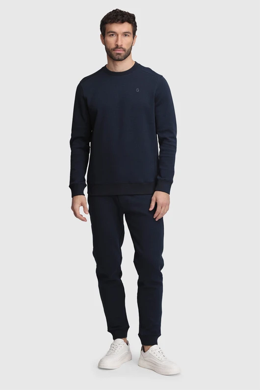 Bluza w fasonie regular zachwyca minimalistyczną formą, ozdobioną jedynie subtelnym znakiem G na piersi — bez dodatkowych aplikacji, oparta na czystej, eleganckiej strukturze dzianiny. Model zakładany przez głowę zachowuje sportową prostotę. Spodnie w dopasowanym odcieniu uzupełniają całość poprzez wygodne ściągacze, elastyczną talię regulowaną sznurkiem oraz delikatne logo na kieszeni. Zestaw tworzy spójny, premiumowy komplet wyróżniający się szlachetną prostotą, stonowaną kolorystyką i perfekcyjnym wykończeniem, idealny na co dzień — gdy komfort ma iść w parze z stylem.
