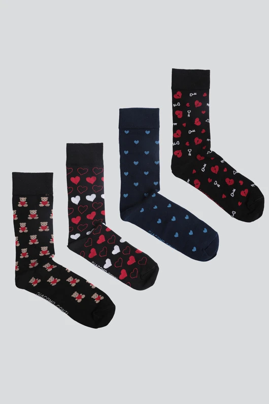 Czteropak skarpet od Giacomo Conti to stylowy ukłon w stronę walentynkowego klimatu – idealne dla panów, którzy cenią wygodę, ale nie stronią od odrobiny romantycznego akcentu w garderobie. Subtelny, tematyczny wzór inspirowany motywem Walentynek dodaje całości lekkości i charakteru, pozostając jednocześnie eleganckim dodatkiem do codziennych stylizacji.