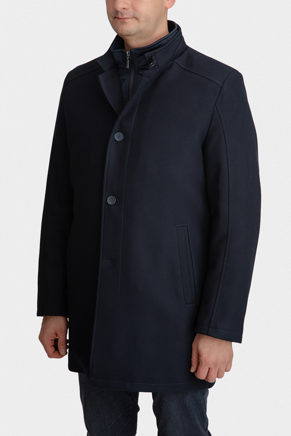Płaszcz wykonano z wysokogatunkowej tkaniny o składzie 68% poliester, 30% wiskoza, 2% elastan, która wyróżnia się odpornością na zagniecenia, elastycznością i przyjemnym w dotyku wykończeniem. Zastosowana cienka ocieplina zapewnia optymalną izolację termiczną, czyniąc model idealnym wyborem zarówno na chłodniejsze dni wiosny i jesieni, jak i na łagodną zimę.