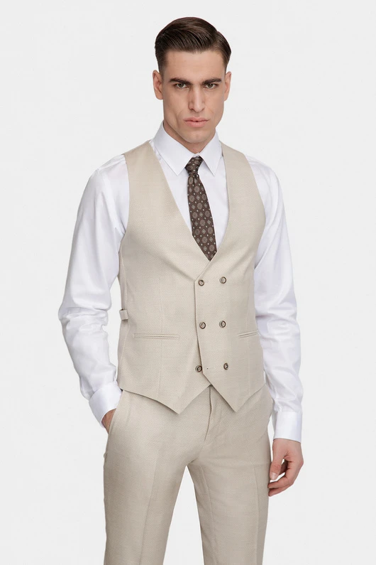 - Dwurzędowa beżowa kamizelka 03113A15SSB Dwurzędowa beżowa kamizelka 03113A15SSB