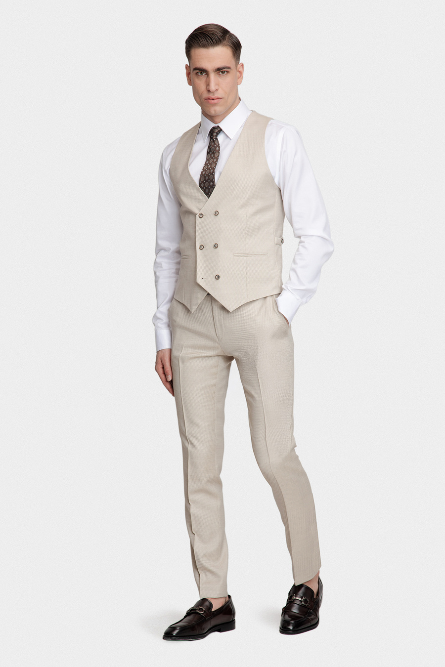 Strukturalny beżowy garnitur 03113A15SSB