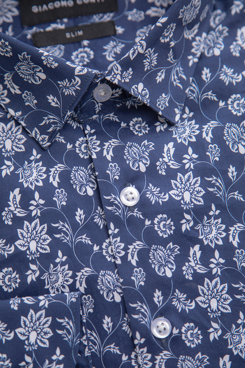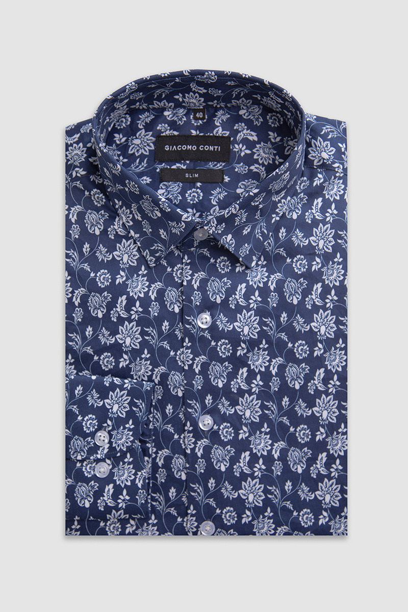 Granatowa koszula w florystyczny wzór 01778B75FSA od Giacomo Conti to perfekcyjna propozycja dla każdego stylowego mężczyzny.