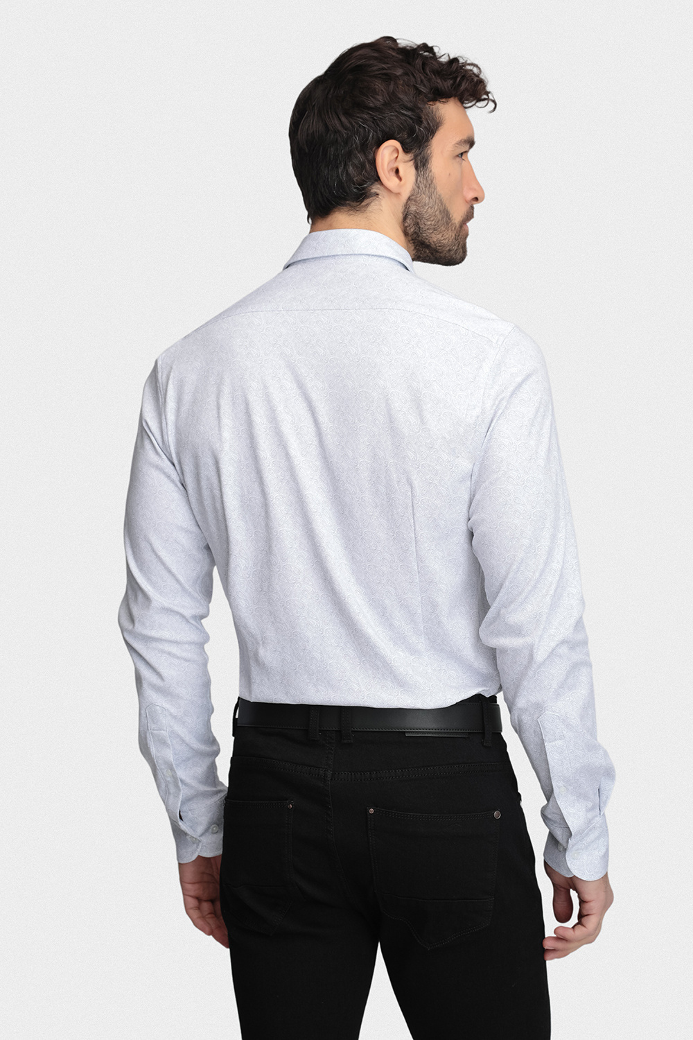 Modny wzór paisley podkreśla indywidualny charakter, a fason slim subtelnie wysmukla sylwetkę. Kołnierzyk kent świetnie komponuje się z krawatem, a długi rękaw z mankietem na guzik i odkryta plisa dodają koszuli uniwersalnej elegancji. Idealna propozycja dla mężczyzn ceniących styl i wygodę.