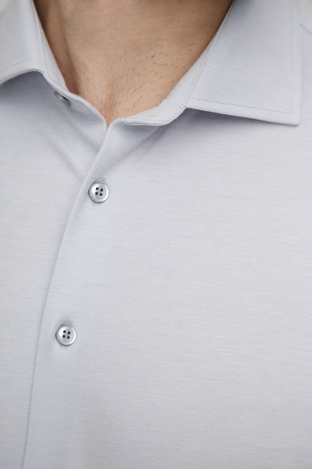 Elegancki szary kolor, gładka struktura materiału oraz błyszczące guziki nadają koszuli stylowego, nowoczesnego charakteru. Kołnierz kent pozwala nosić ją z krawatem lub bez dodatków, a dopasowany krój podkreśla atuty sylwetki, zapewniając nienaganny wygląd w każdej sytuacji.