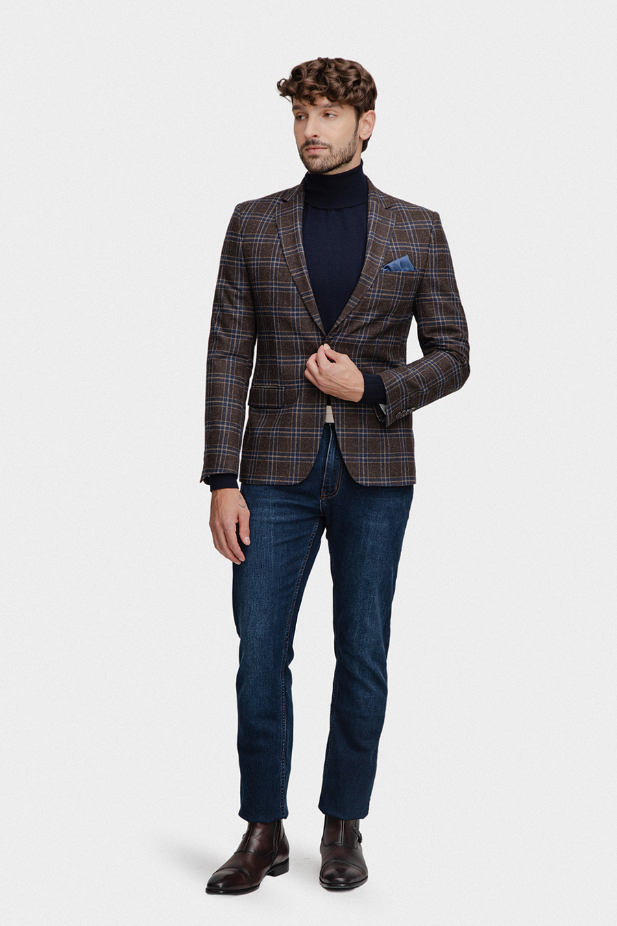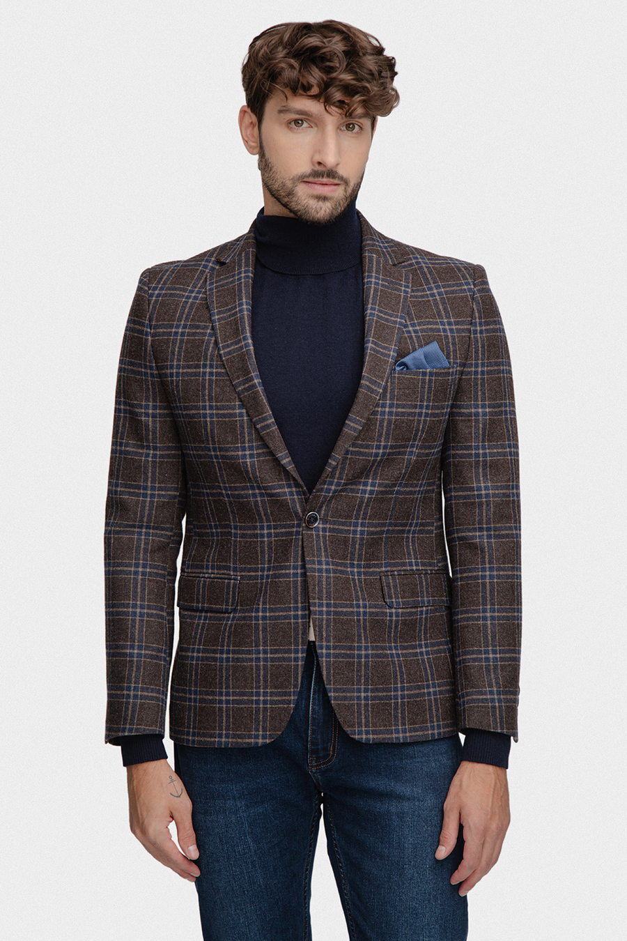 - Brązowa marynarka w niebieską kratę 01008B80KSA Brązowa marynarka w niebieską kratę 01008B80KSA