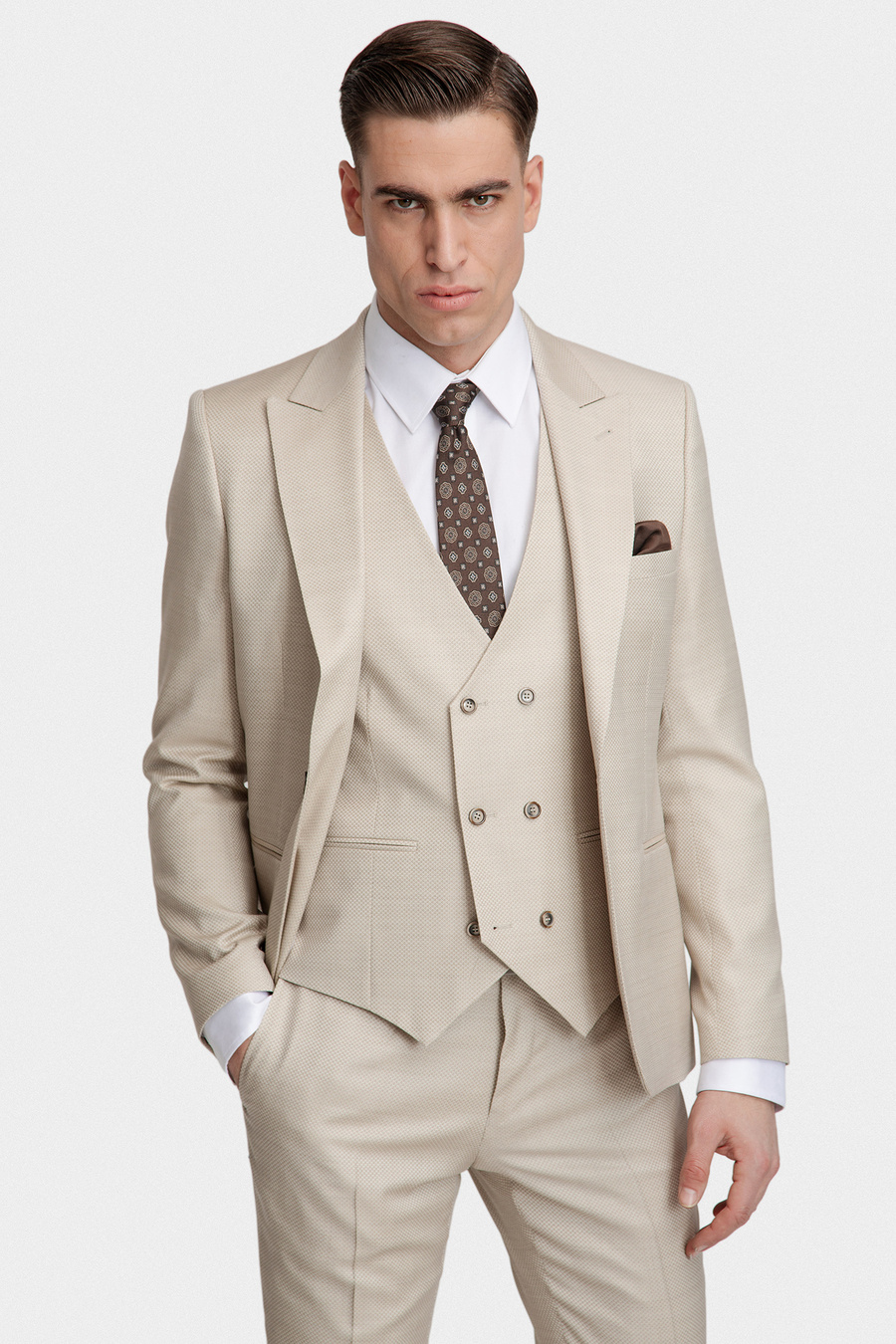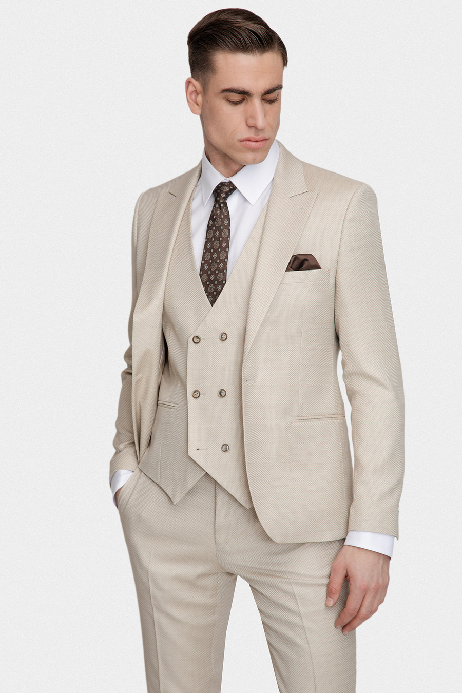 Strukturalny beżowy garnitur 03113A15SSB