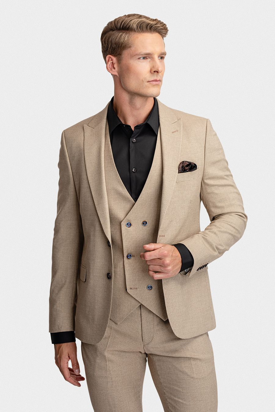 Marynarka męska w beżowym melanżu łączy dopracowaną linię slim z całorocznym komfortem i elegancją na każdą okazję. Mieszanka poliestru i wiskozy jest przyjemna w dotyku, trwała i łatwa w pielęgnacji, a domieszka elastanu dodaje swobody ruchów przez cały dzień. Jednorzędowe zapięcie i subtelna faktura podkreślają nowoczesny charakter, budując pewność siebie w biurze, na spotkaniu czy przy wieczornym wyjściu.