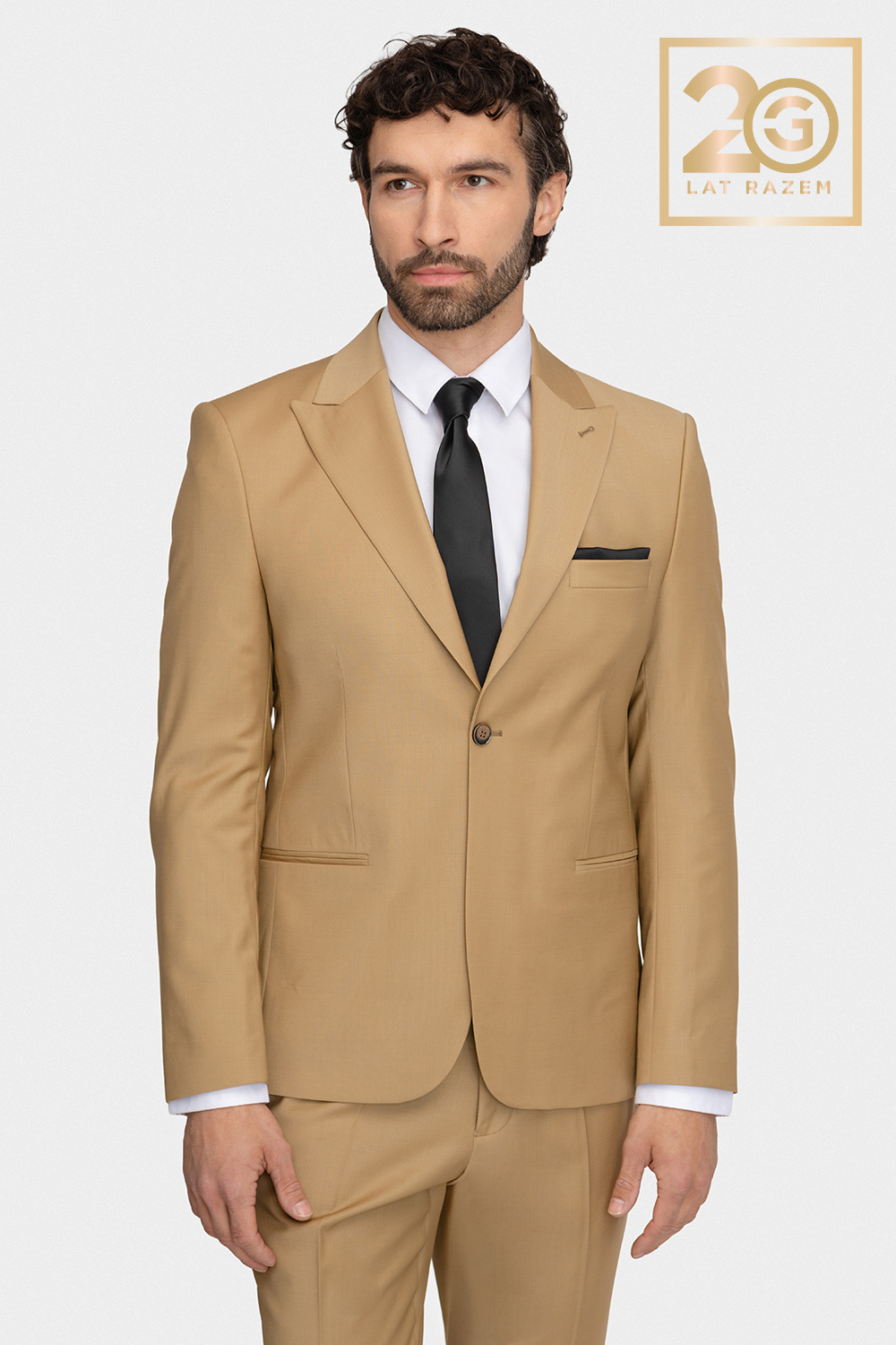 Marynarka męska GABRIELE 04026A15GSA od Giacomo Conti to wyjątkowa propozycja z kolekcji jubileuszowej, przygotowanej z okazji 20-lecia marki. W złotym odcieniu