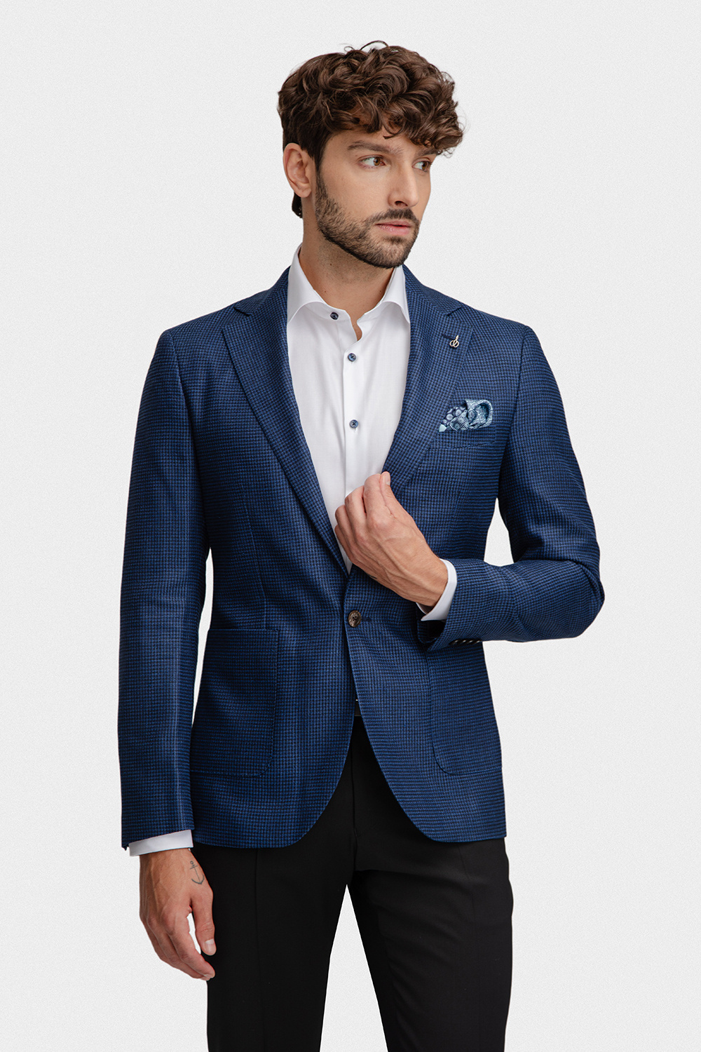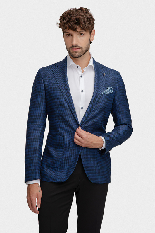 Niebieski odcień w połączeniu z mikrowzorem nadaje marynarce wyjątkowego charakteru, który z łatwością dostosujesz do różnych okazji - od biznesowych spotkań po casualowe wyjścia. Model o fasonie comfort, który delikatnie poszerza się w okolicach talii i brzucha, oferując wygodę i swobodę ruchów bez rezygnacji z eleganckiego wyglądu.