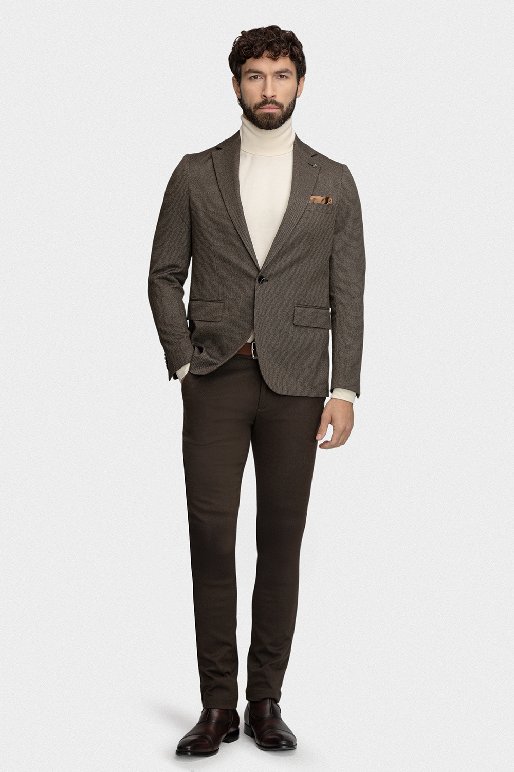 Ta brązowa marynarka męska MASSIMO to propozycja stworzona z myślą o mężczyznach, którzy cenią elegancję połączoną z nowoczesnym stylem. Idealna na sezon jesienno-zimowy – doskonale sprawdzi się zarówno w biurze, jak i podczas spotkań towarzyskich czy wieczornych wyjść. Jej uniwersalny, smart-casualowy charakter pozwala tworzyć stylizacje w duchu klasycznej elegancji lub w nieco swobodniejszym wydaniu.