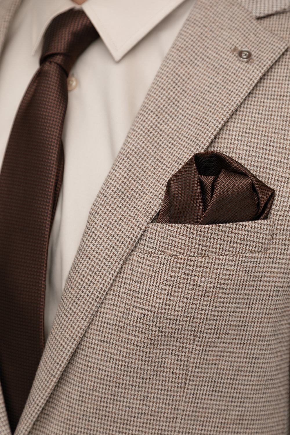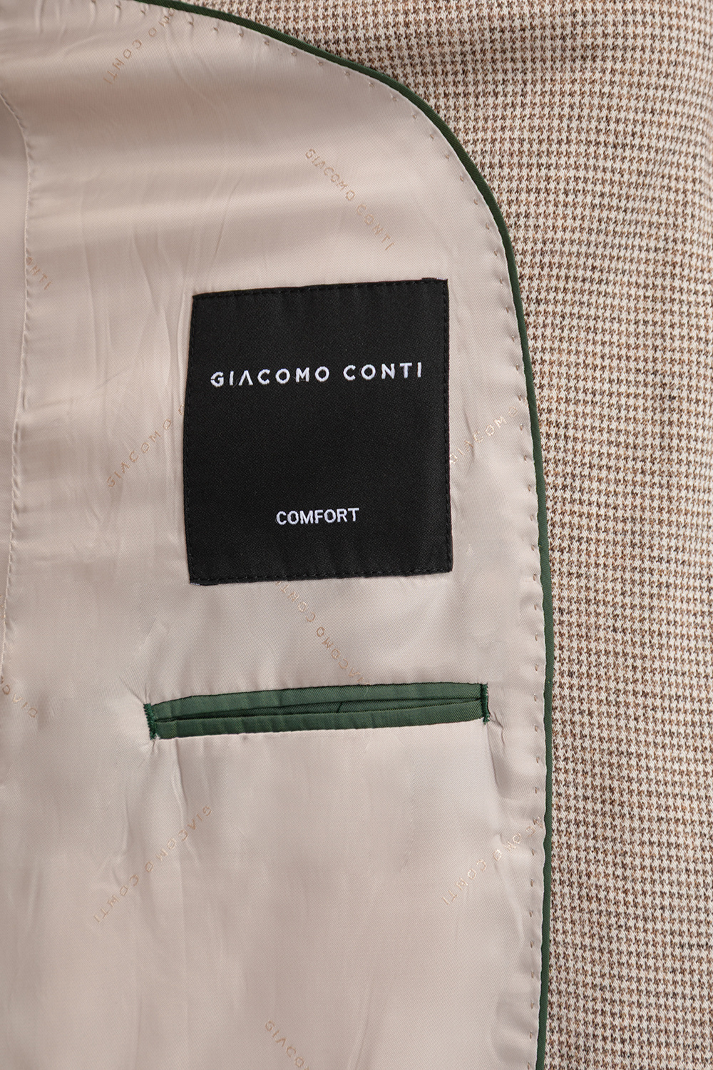 Klasyczny wzór w pepitkę, wzbogacony o elegancki jasnobrązowy odcień, nadaje całości wyrafinowanego charakteru i ponadczasowego stylu. Fason typu comfort został zaprojektowany z myślą o maksymalnej swobodzie ruchów, dzięki czemu marynarka świetnie dopasowuje się do sylwetki, nie krępując jej.