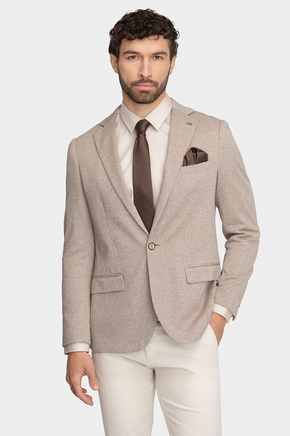 - Jasnobrązowa marynarka w pepitkę 01168B79TCA Jasnobrązowa marynarka w pepitkę 01168B79TCA