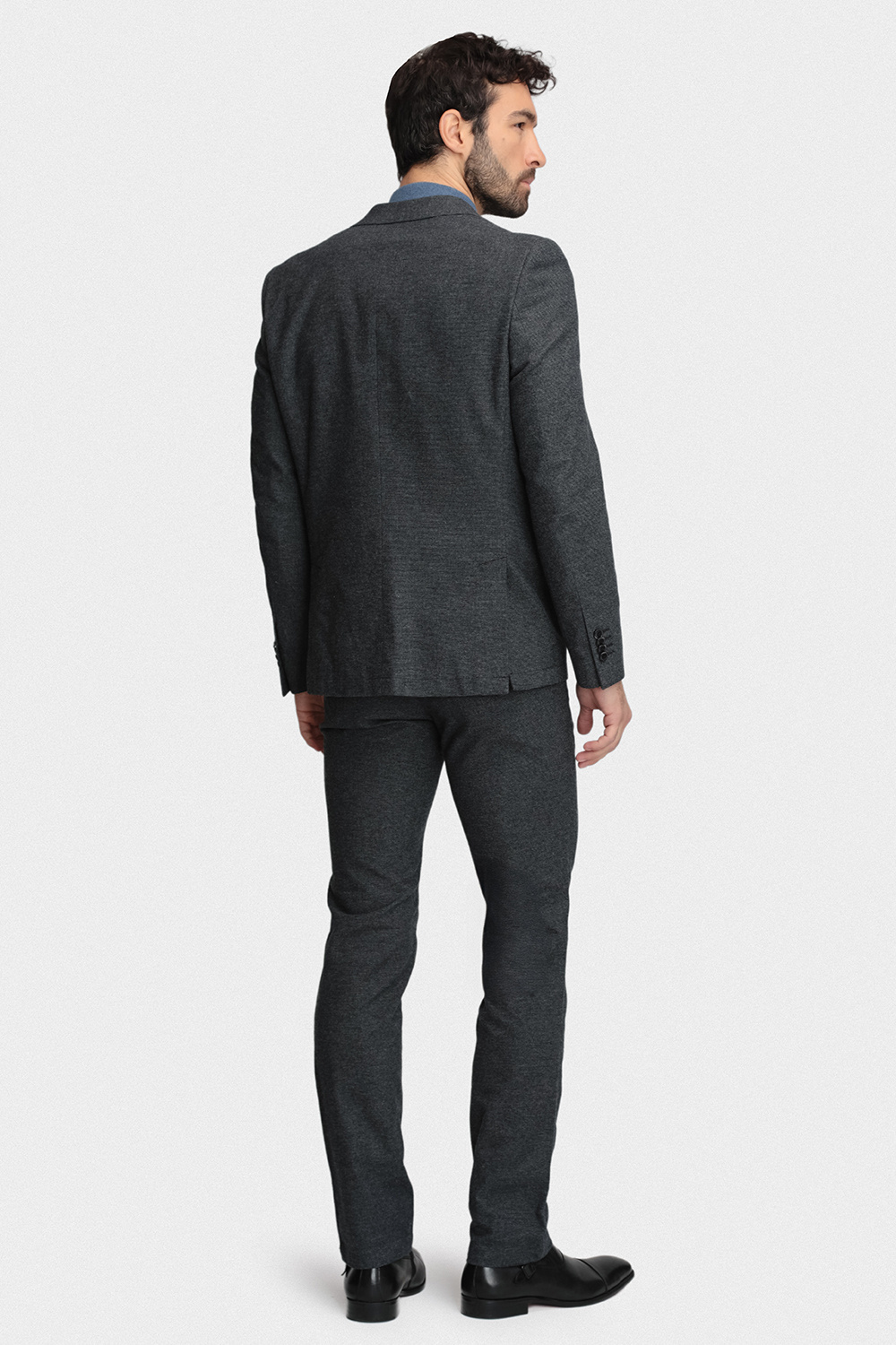 Marynarka jest jednorzędowa, zapinana na guzik. Klapy, butonierka oraz cięta brustasza - idealna na subtelną poszetkę, dodają całości klasycznego charakteru.