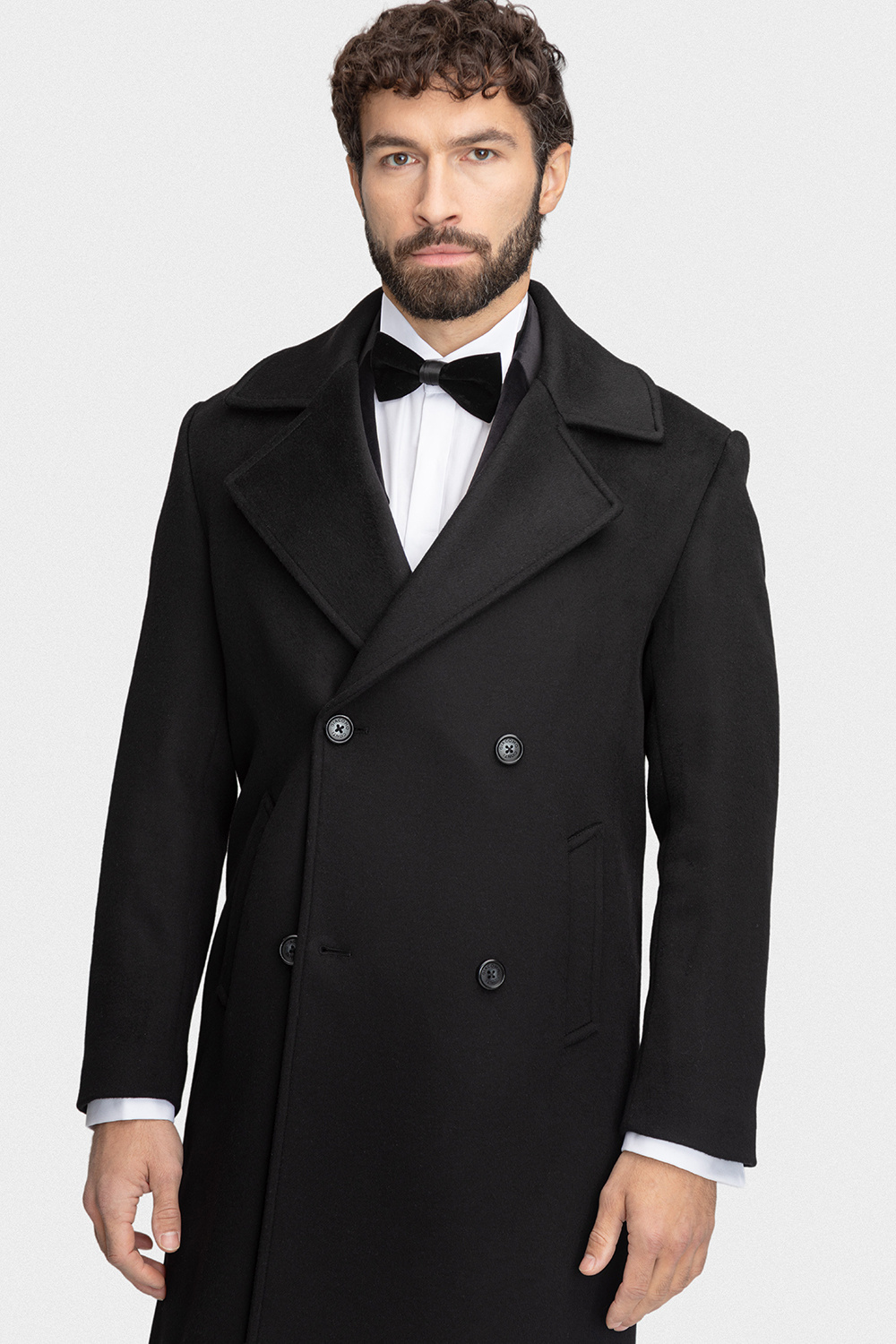 - Dwurzędowy czarny płaszcz 00281A90GSA Dwurzędowy czarny płaszcz 00281A90GSA