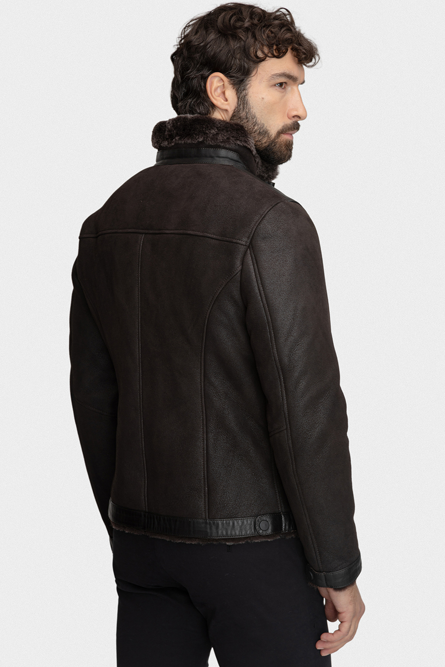 Brązowy kożuch ze skóry owczej 01007A79KSA