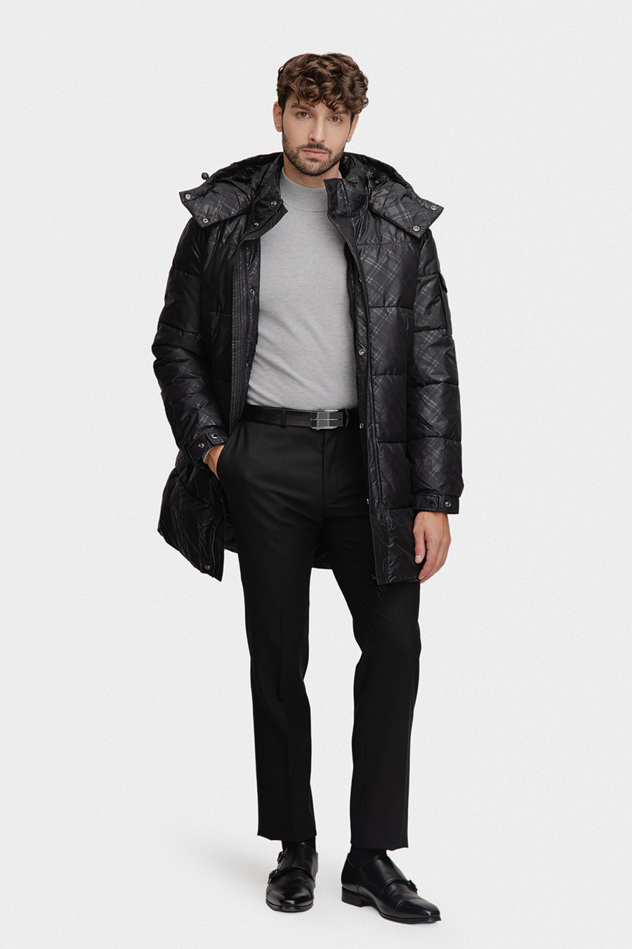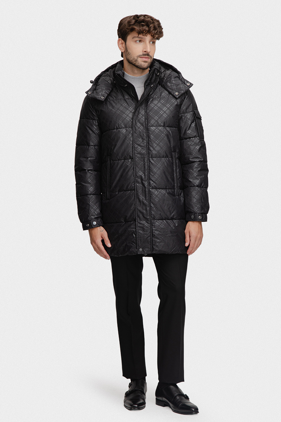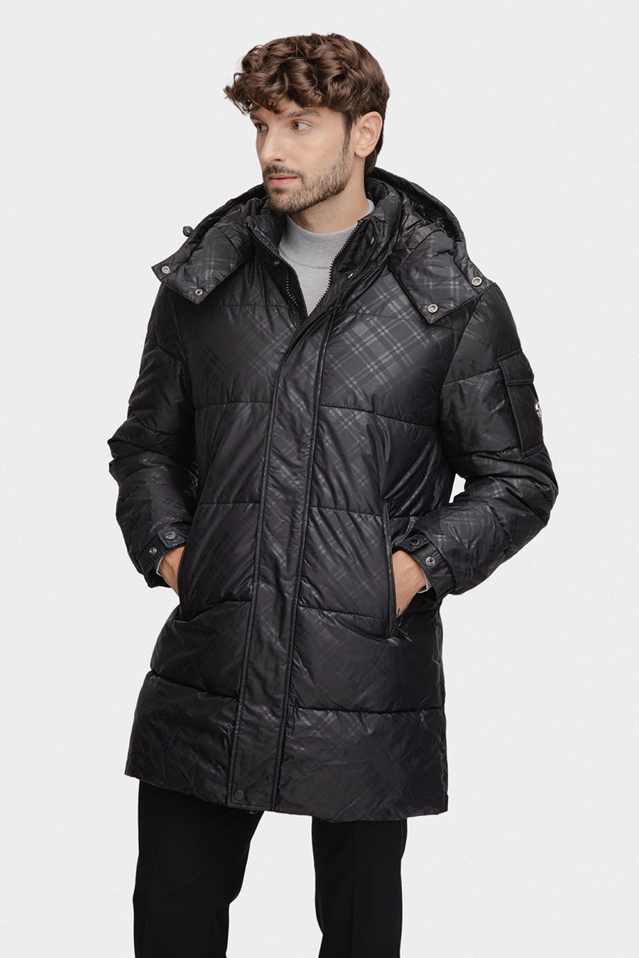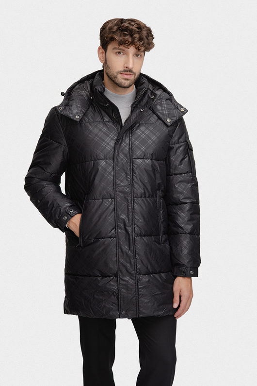 Model utrzymany jest w klasycznej, głębokiej czerni, która została przełamana pikowaną strukturą i subtelnym wzorem kraty, dodającym całości nowoczesnego charakteru. Solidny zamek błyskawiczny, osłonięty listwą z napami, skutecznie chroni przed wiatrem i zimnem, a długość sięgająca nieco za biodra zapewnia dodatkową ochronę termiczną bez ograniczania swobody ruchów. Dla jeszcze lepszej ochrony przed niekorzystną pogodą kurtka została wyposażona w praktyczny kaptur, który idealnie sprawdzi się podczas deszczu, śniegu lub silnego wiatru. Z kolei regulacja na nadgarstkach – w formie zapięć na napy – pozwala dopasować rękawy do indywidualnych potrzeb, zapobiegając dostawaniu się zimna pod materiał.