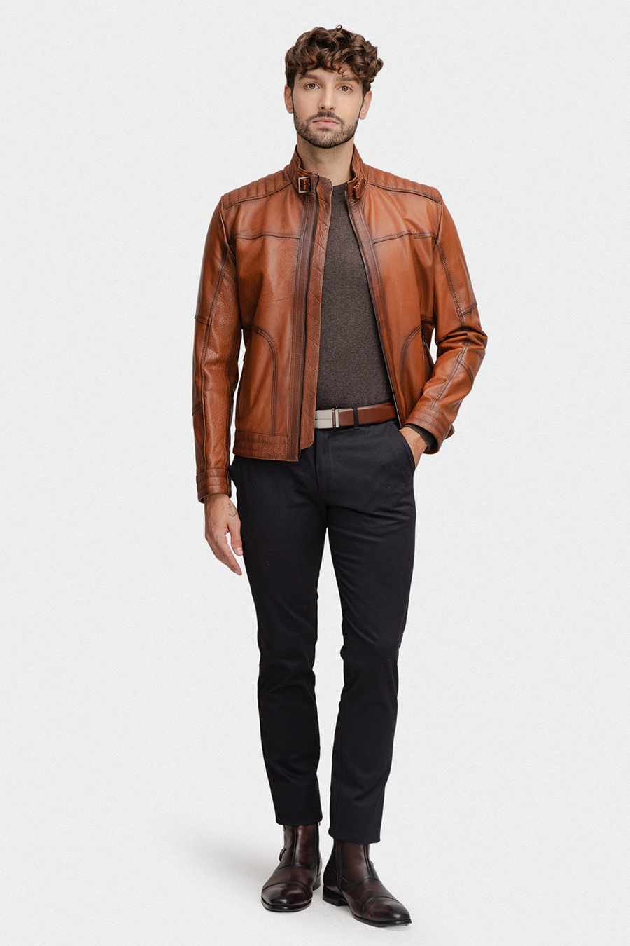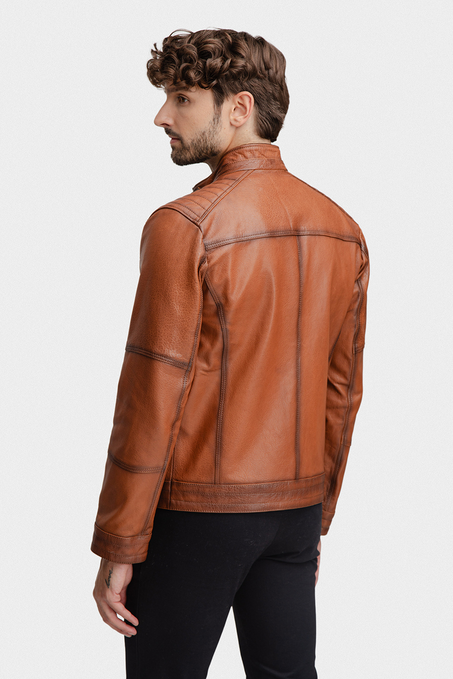 Model został wykonany z naturalnej skóry jagnięcej, cenionej za swoją miękkość, elastyczność i wysoką trwałość. To właśnie te cechy sprawiają, że ten rodzaj skóry uznawany jest za materiał klasy premium, chętnie wybierany przez wymagających klientów. Dzięki swojej strukturze skóra jest łatwa w pielęgnacji, zachowuje elegancki wygląd i doskonale reguluje temperaturę ciała, co czyni kurtkę idealnym wyborem na chłodniejsze dni. Wnętrze kurtki wykończono wytrzymałą, wodoodporną podszewką z tkaniny poliestrowej, która skutecznie chroni przed chłodem i wiatrem, zapewniając wysoki komfort użytkowania.