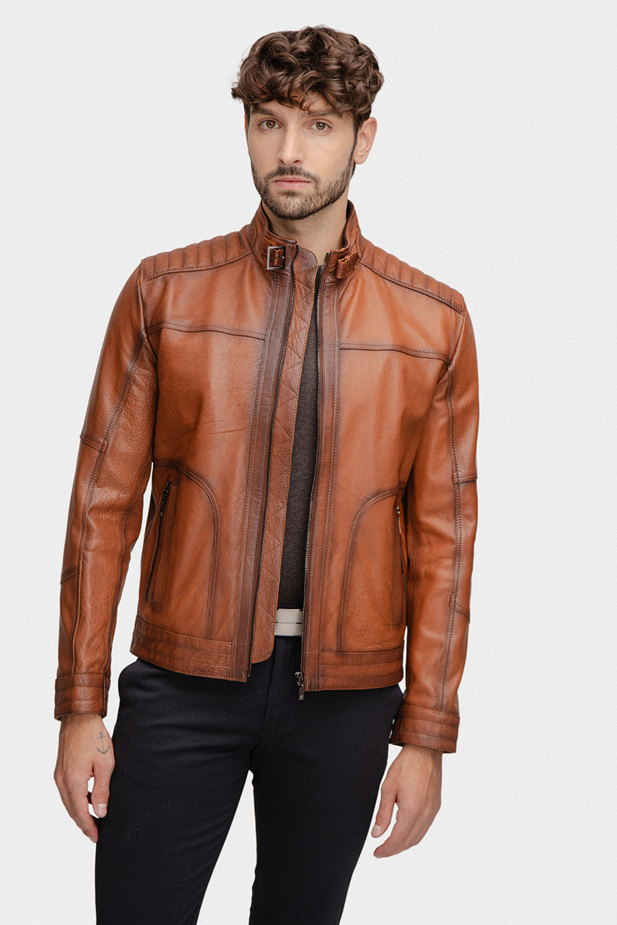 - Jasnobrązowa kurtka ze skóry jagnięcej 01058B79GSA Jasnobrązowa kurtka ze skóry jagnięcej 01058B79GSA