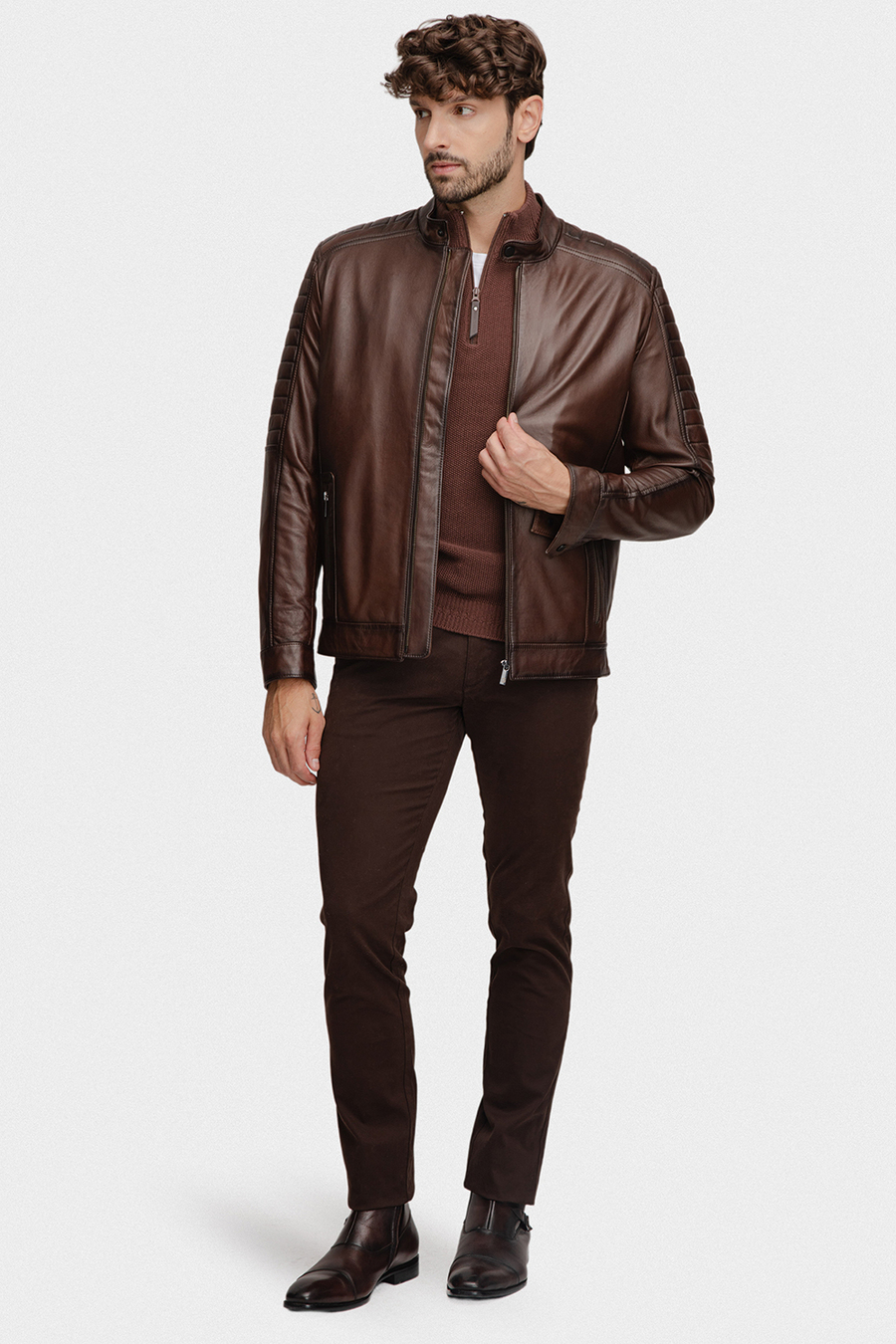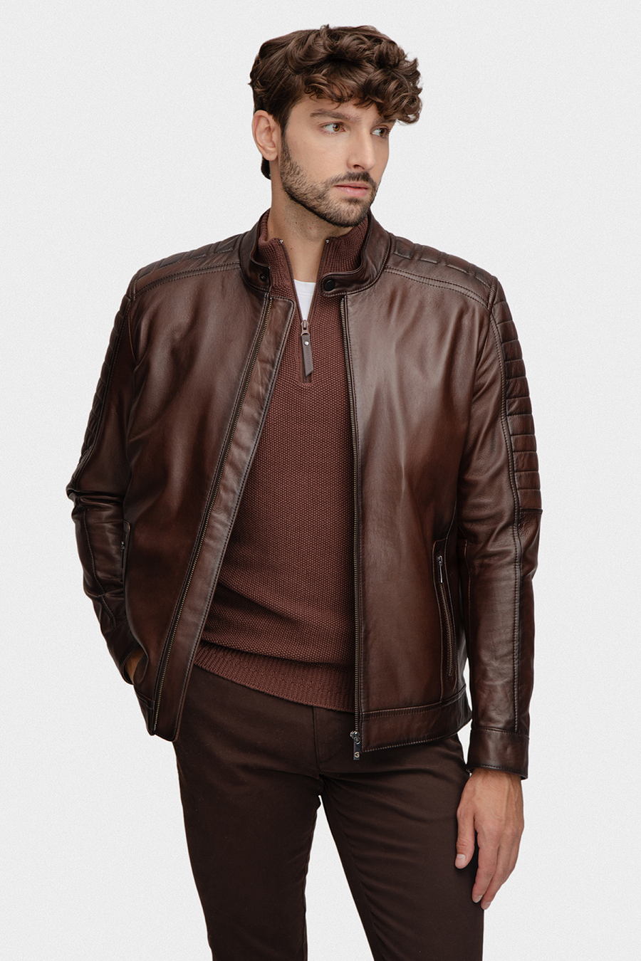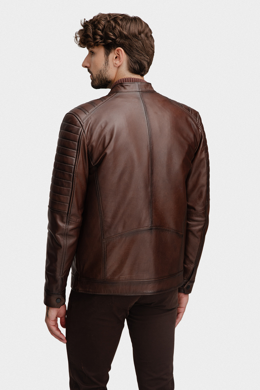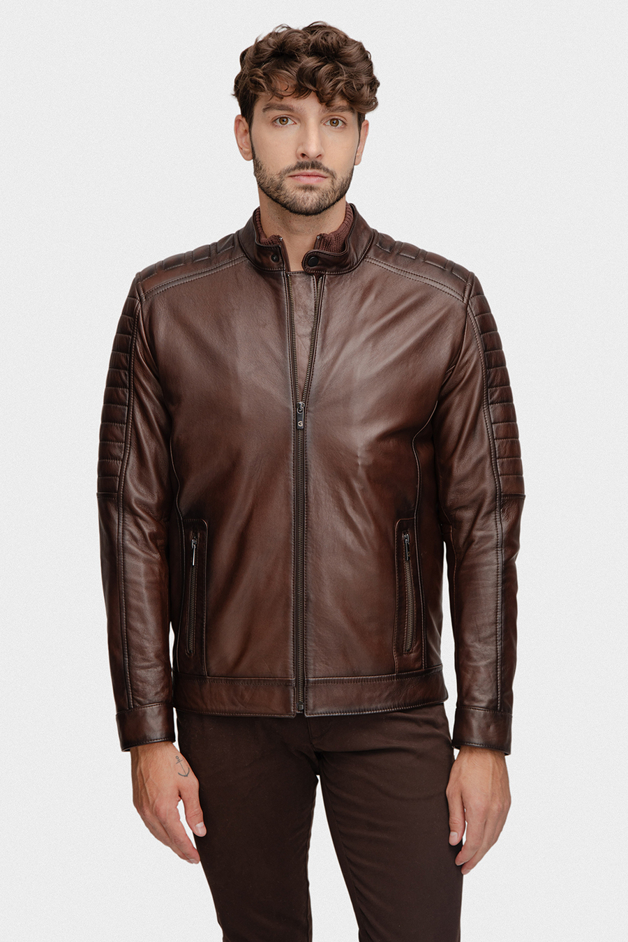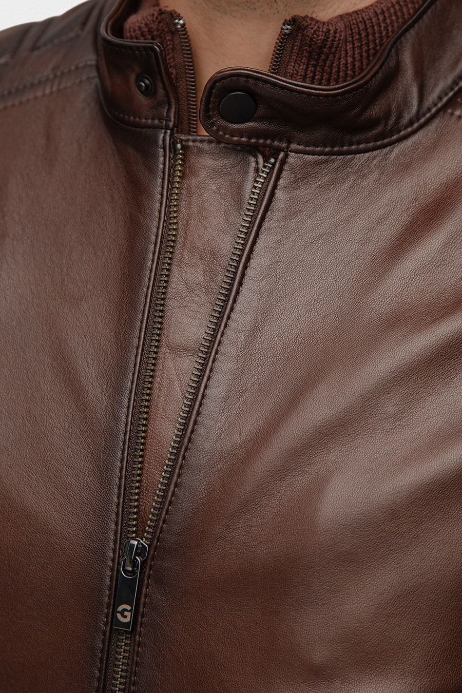 Ciemnobrązowa kurtka ze skóry jagnięcej 01031A80GRB