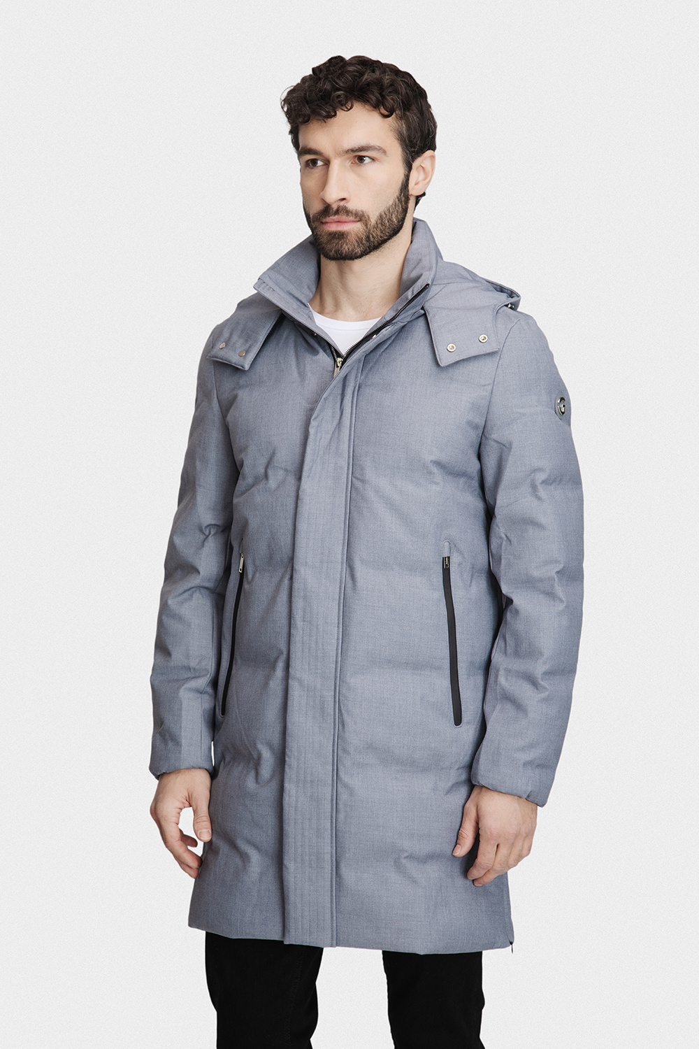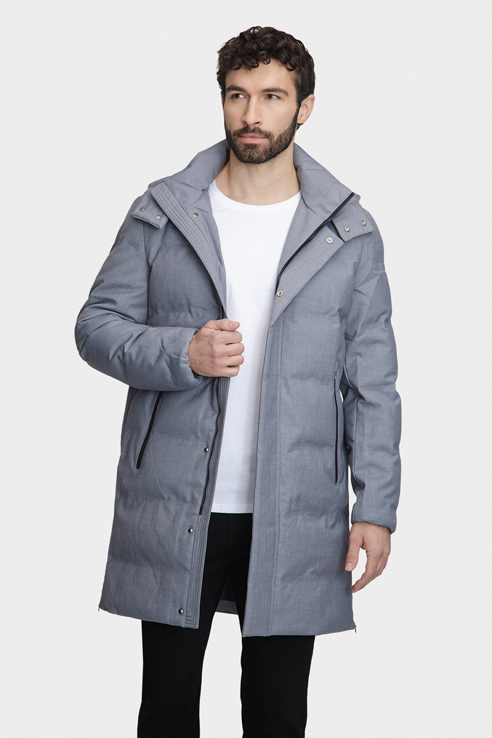 Popielata kurtka zimowa zaprojektowana z myślą o maksymalnym komforcie i funkcjonalności w chłodniejszych miesiącach. Model wykonany z trwałej tkaniny z poliestru z dodatkiem rayonu, która dobrze chroni przed wiatrem i chłodem, jednocześnie zachowując estetyczny, nowoczesny wygląd. Ocieplana, pikowana konstrukcja skutecznie utrzymuje ciepło, zapewniając wygodę nawet w niskich temperaturach.