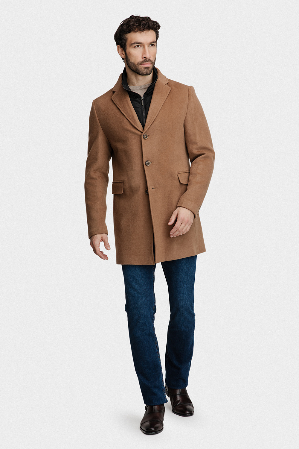 Oryginalny brązowy odcień o gładkiej strukturze to ponadczasowa i uniwersalna propozycja. Płaszcz zapinany jest na jednorzędowe pasmo eleganckich, lekko połyskujących guzików. Fason slim doskonale dopasowuje się do sylwetki.