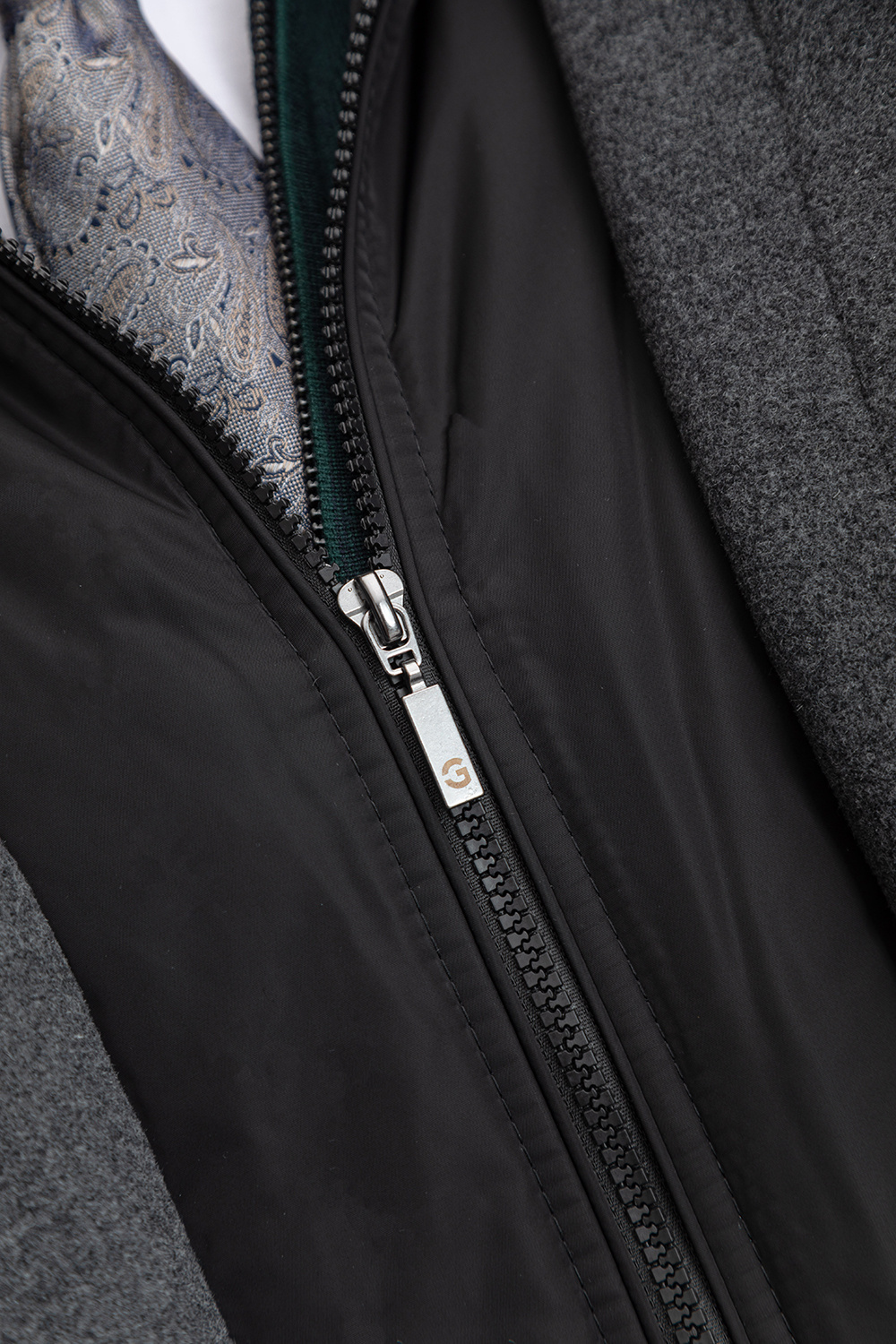 - Podwójne zapięcie na zamek i guziki