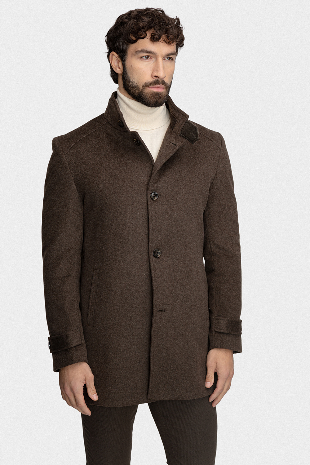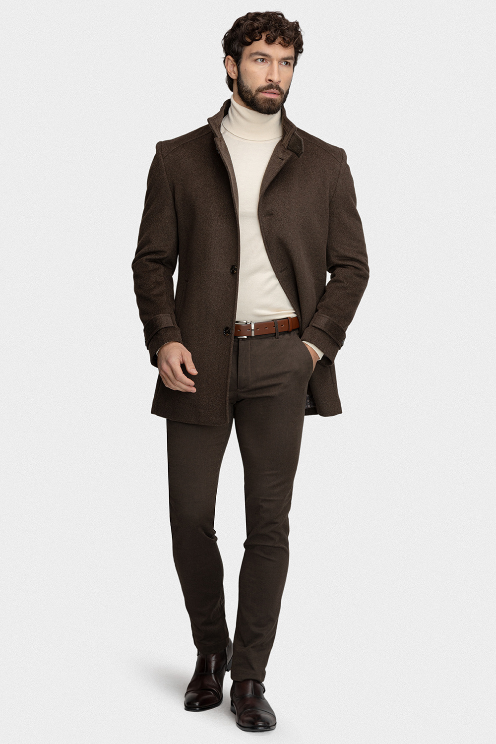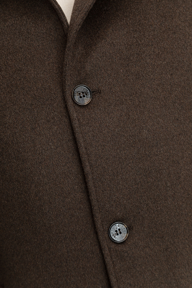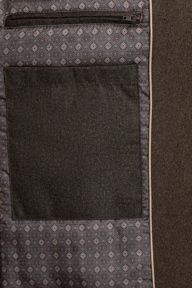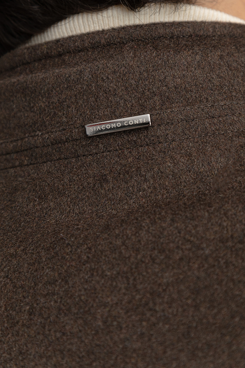 Stylowy brązowy płaszcz męski 00282B80GSA od Giacomo Conti to połączenie klasycznej elegancji z nowoczesnym wykończeniem. Uszyty z wysokogatunkowego, grubego flauszu, zapewnia nie tylko doskonały wygląd, ale również komfort cieplny w chłodne dni sezonu jesienno-zimowego.