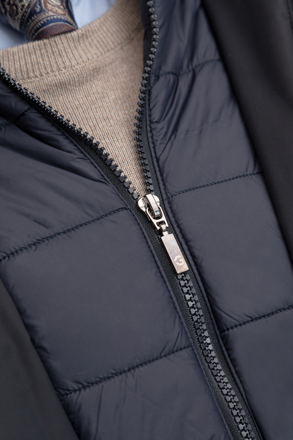 Granatowa tkanina sprawia, że płaszcz prezentuje się szlachetnie i wyjątkowo uniwersalnie — świetnie współgra zarówno z eleganckim garniturem, jak i bardziej swobodnymi zestawami, takimi jak golf czy chinosy. Starannie dobrany materiał gwarantuje komfort termiczny, przewiewność i trwałość, dzięki czemu model sprawdza się w codziennym użytkowaniu oraz zmiennych warunkach pogodowych.