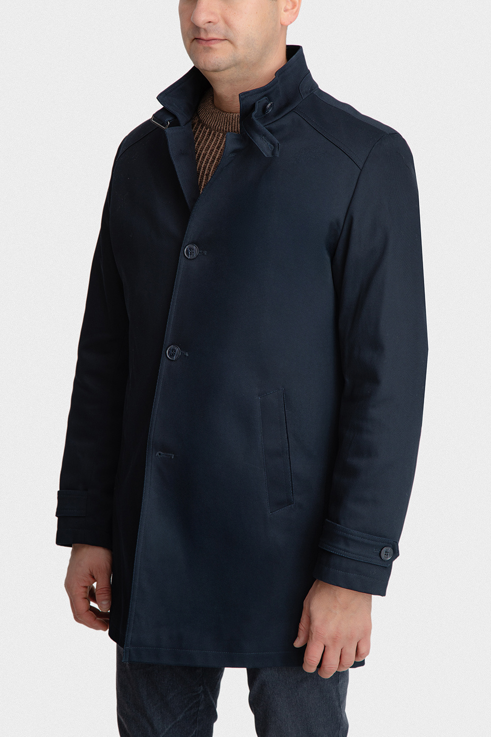 Fason slim podkreśla sylwetkę i nadaje całości nowoczesnego charakteru. Gładki, granatowy kolor dodaje elegancji oraz ponadczasowego stylu, dzięki czemu płaszcz doskonale komponuje się zarówno z garniturem, jak i z bardziej casualowymi stylizacjami.