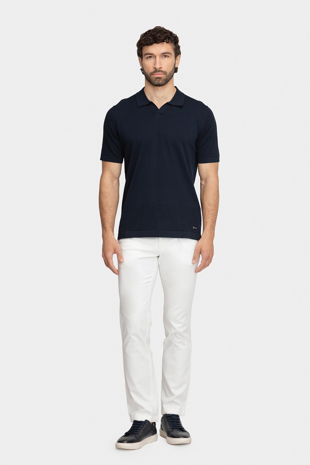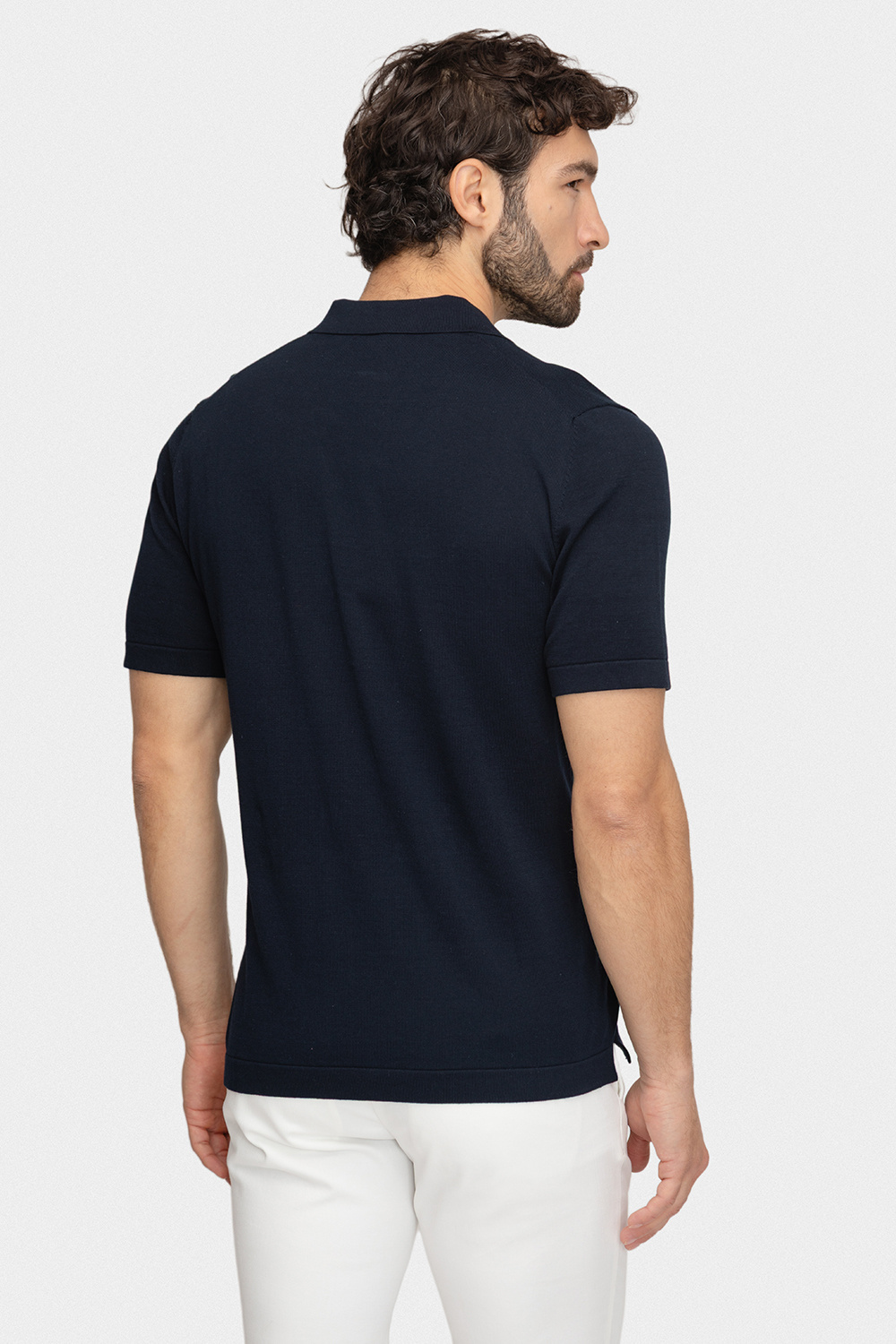 Ponadczasowy granat w nowoczesnym wydaniu. To polo wykonane w 100% z wysokiej jakości bawełny gwarantuje komfort i przewiewność przez cały dzień. Dzianinowa tkanina zapewnia lekkość oraz idealne dopasowanie do sylwetki. Subtelna struktura na rękawach dodaje całości charakteru, a klasyczny kołnierzyk podkreśla elegancki, uniwersalny styl. Granatowy kolor sprawia, że model doskonale wpisuje się zarówno w codzienne, jak i bardziej formalne zestawienia.