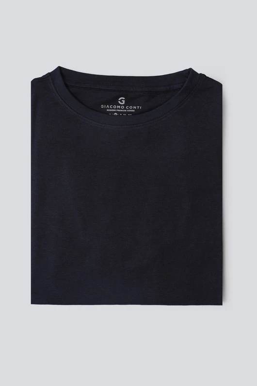 Granatowy T-shirt IVO o klasycznym kroju to połączenie wygody i uniwersalnej bazy na co dzień.