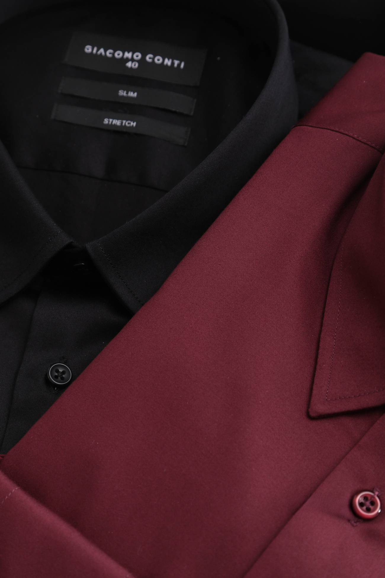 Model w uniwersalnym, bordowym odcieniu o gładkiej strukturze stanowi doskonałą bazę dla wielu całorocznych stylizacji. Dopasowany fason slim. Klasyczny kołnierz typu kent nadaje całości ponadczasowej elegancji, a długi rękaw zakończony mankietem na guzik to dbałość o komfort i wygodę użytkowania.