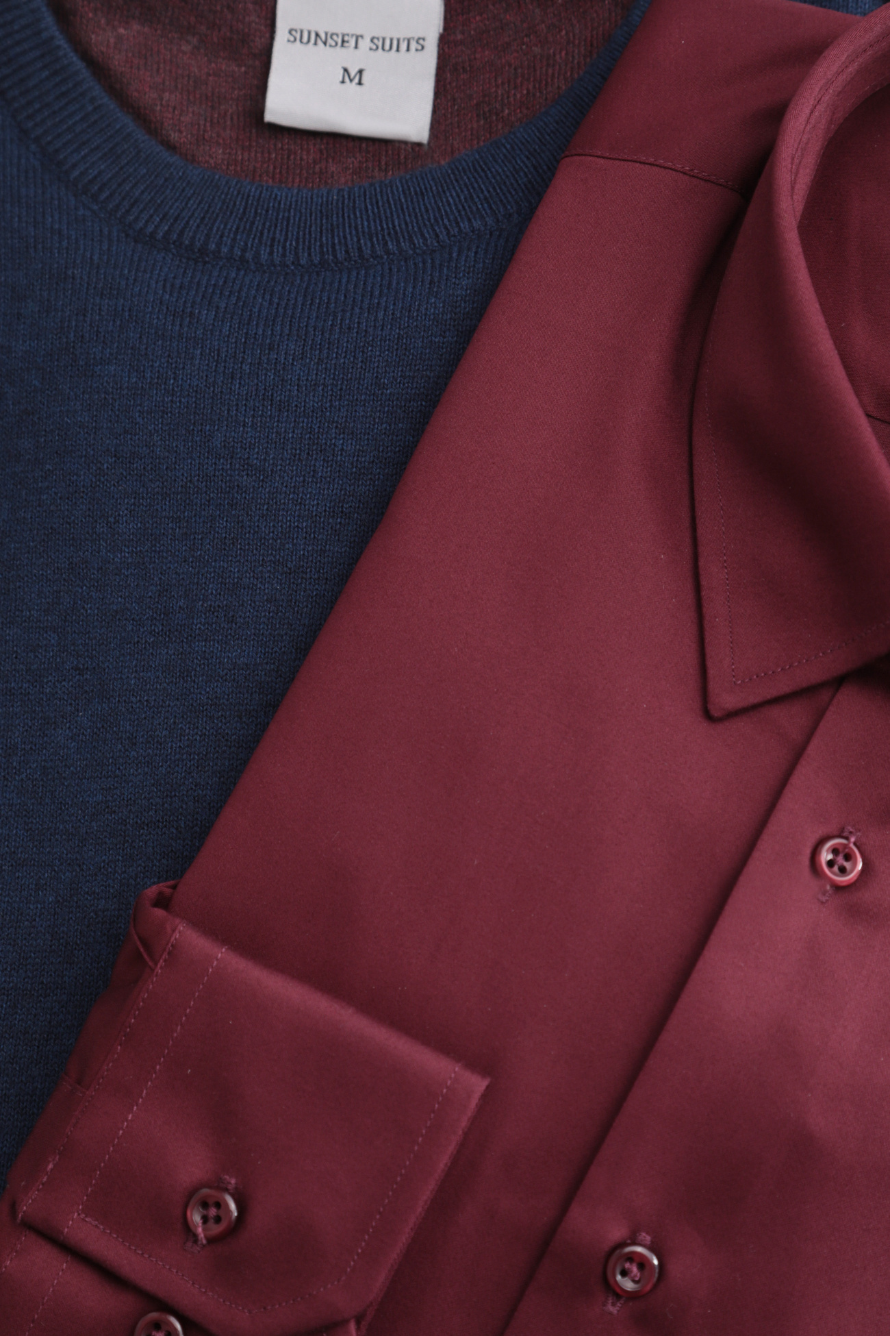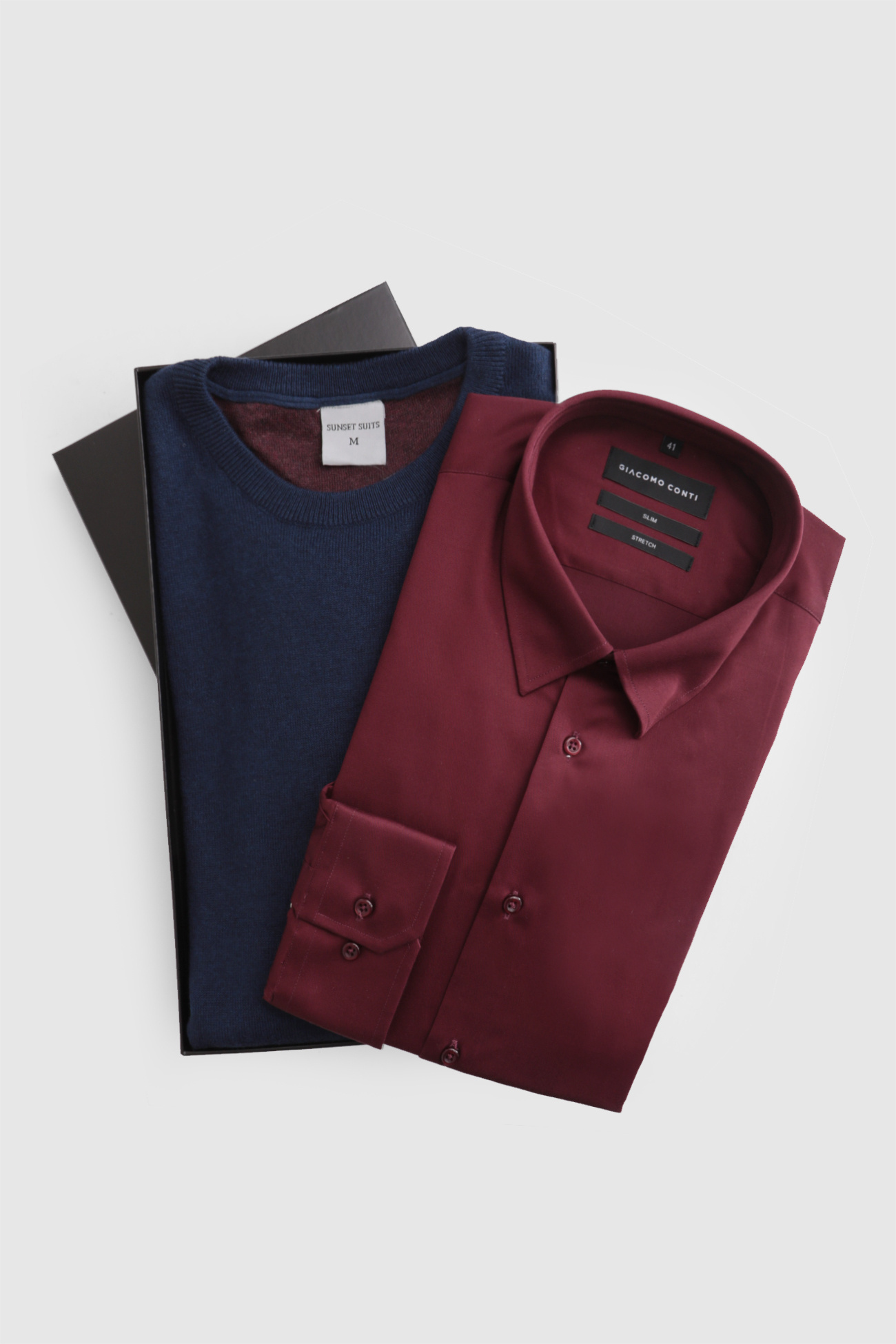 Połączenie głębokiego bordo i klasycznego granatu tworzy elegancką, spójną stylistykę, która przypadnie do gustu mężczyznom stawiającym na ponadczasowy styl z nutą nowoczesności.