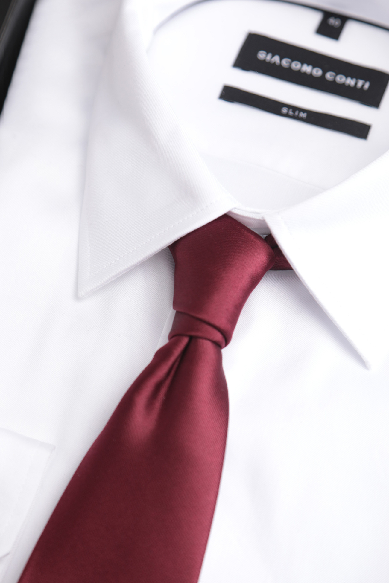- Bordowy odcień krawata
