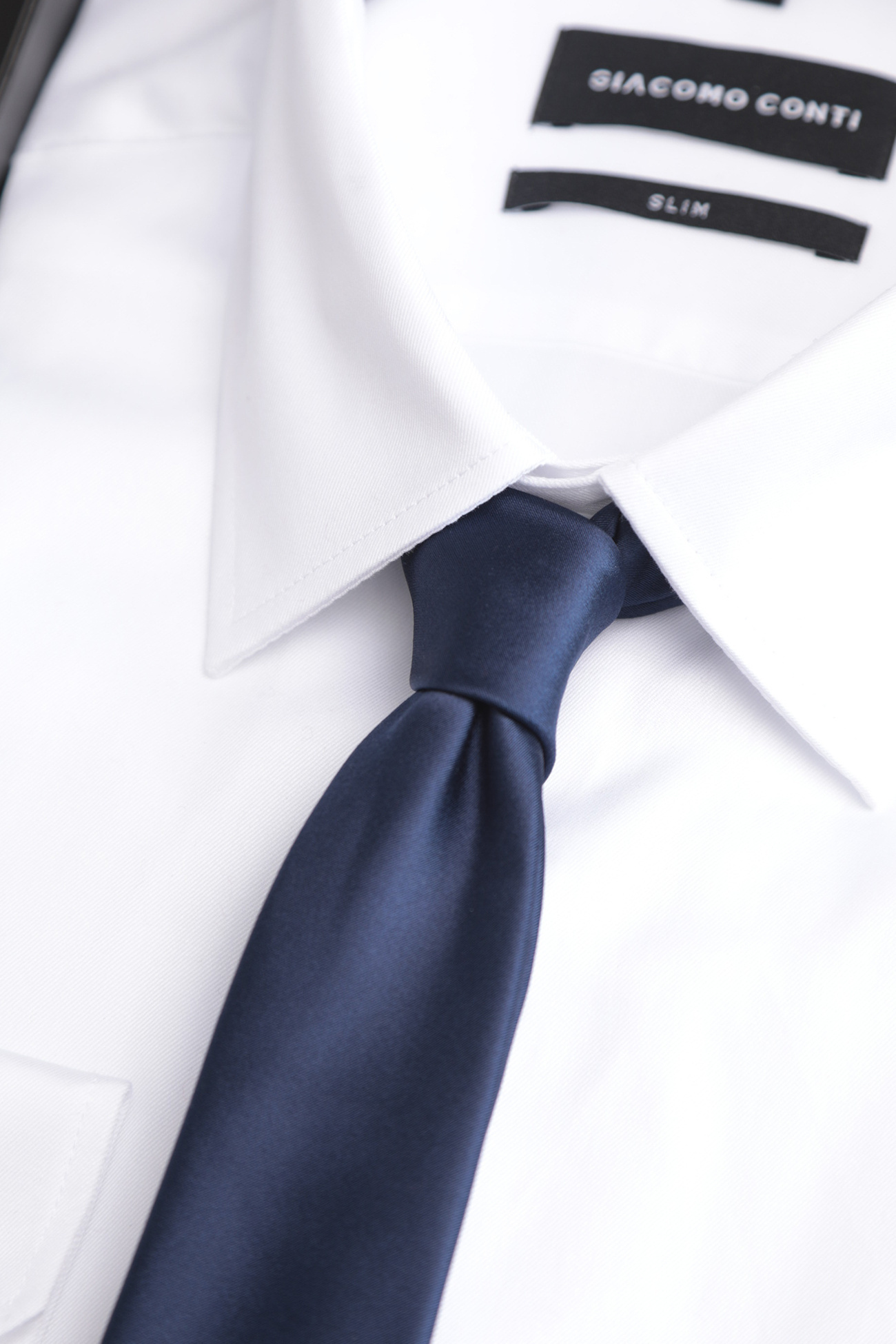 Połączenie ponadczasowej bieli z eleganckim granatem tworzy zestaw idealny dla mężczyzny, który stawia na schludny, klasyczny wygląd z nutą wyrafinowania.
