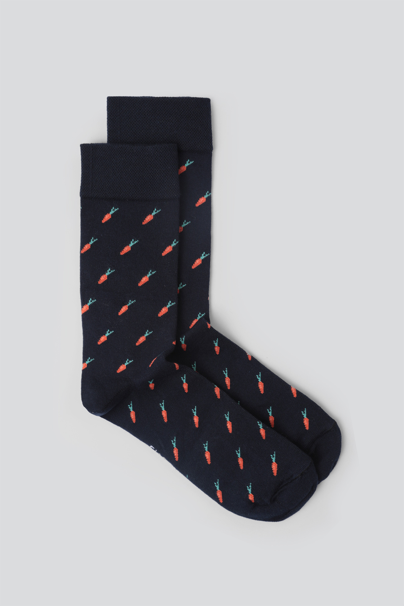 - Granatowe skarpety we wzór marchewek