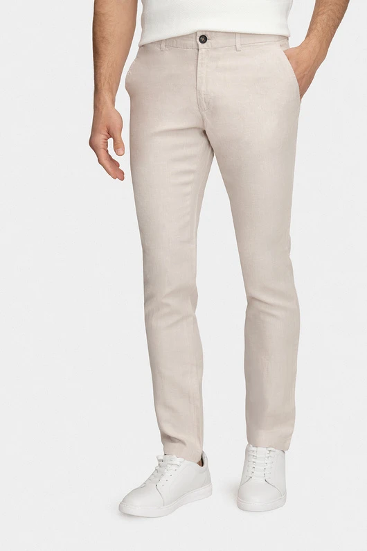 Beżowy odcień nadaje im uniwersalnego i ponadczasowego charakteru, ułatwiając łączenie z różnymi elementami garderoby. Fason regular gwarantuje swobodę ruchów, a staranne wykonanie przekłada się na trwałość i estetyczny wygląd.