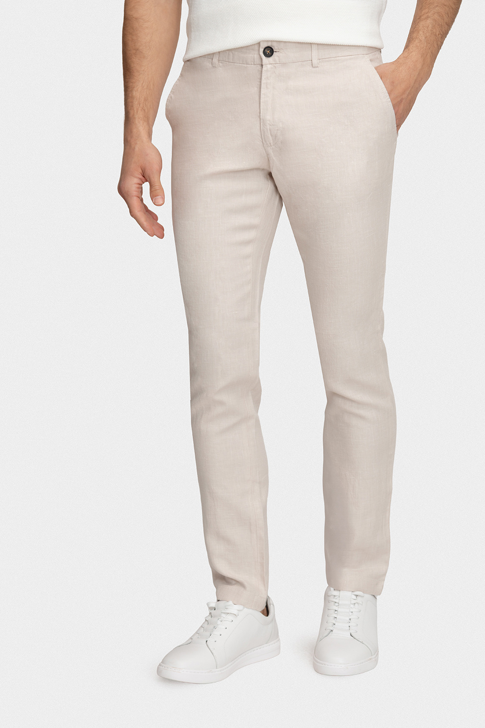 Wykonane z przewiewnej mieszanki lnu i bawełny, zapewniają komfort noszenia nawet w cieplejsze dni. Naturalne materiały pozwalają skórze oddychać, dzięki czemu spodnie pozostają wygodne przez cały dzień.
