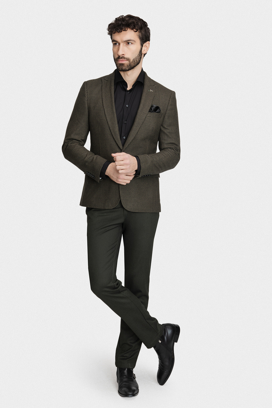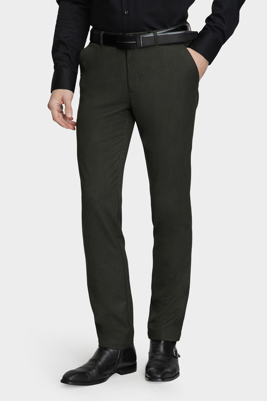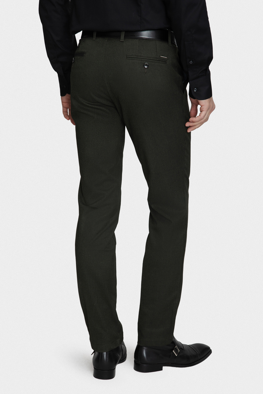 Ciemnozielony odcień z subtelnym melanżowym wzorem nadaje całości nowoczesnego charakteru i sprawia, że spodnie łatwo dopasować do wielu elementów garderoby – zarówno casualowych, jak i bardziej eleganckich.