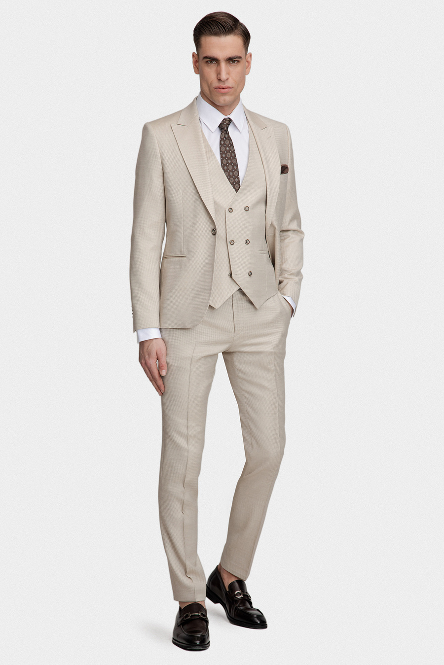 Strukturalny beżowy garnitur 03113A15SSB