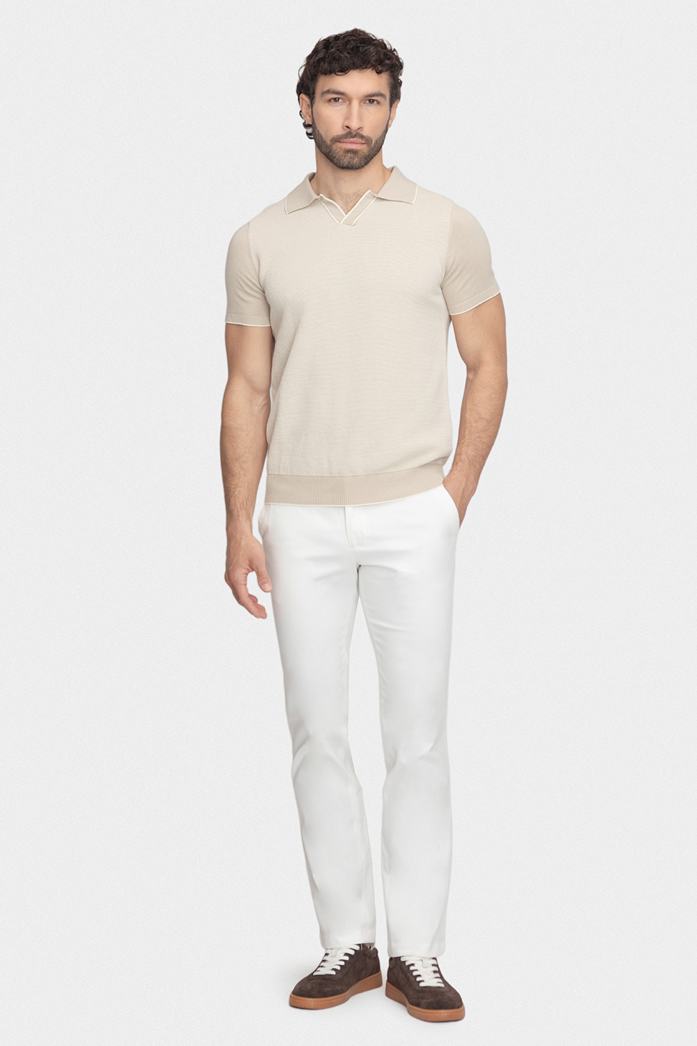 Uniwersalny biały kolor świetnie odnajduje się w wiosenno‑letnich stylizacjach casual – od polo i mokasynów po lekką koszulę i loafersy. Materiał jest przyjemny w dotyku, wytrzymały i łatwy w pielęgnacji, dzięki czemu spodnie idealnie sprawdzą się zarówno na co dzień, jak i na nieformalne wyjścia.