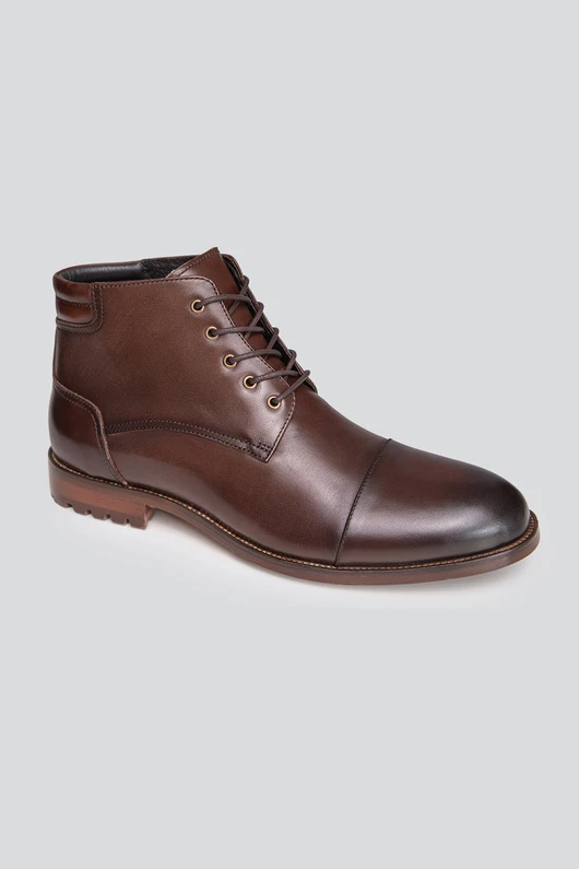 Brązowe, wysokie botki zimowe męskie wykonane w 100% z naturalnej skóry, które łączą klasyczną elegancję z funkcjonalnością na chłodniejsze dni. Model wyróżnia się subtelnie podpalanymi czubkami, nadającymi obuwiu szlachetny, wyrazisty charakter i podkreślającymi jakość wykończenia. Solidna konstrukcja oraz starannie dopracowane detale sprawiają, że buty prezentują się stylowo zarówno w zestawieniu z eleganckimi spodniami, jak i bardziej casualowymi stylizacjami.