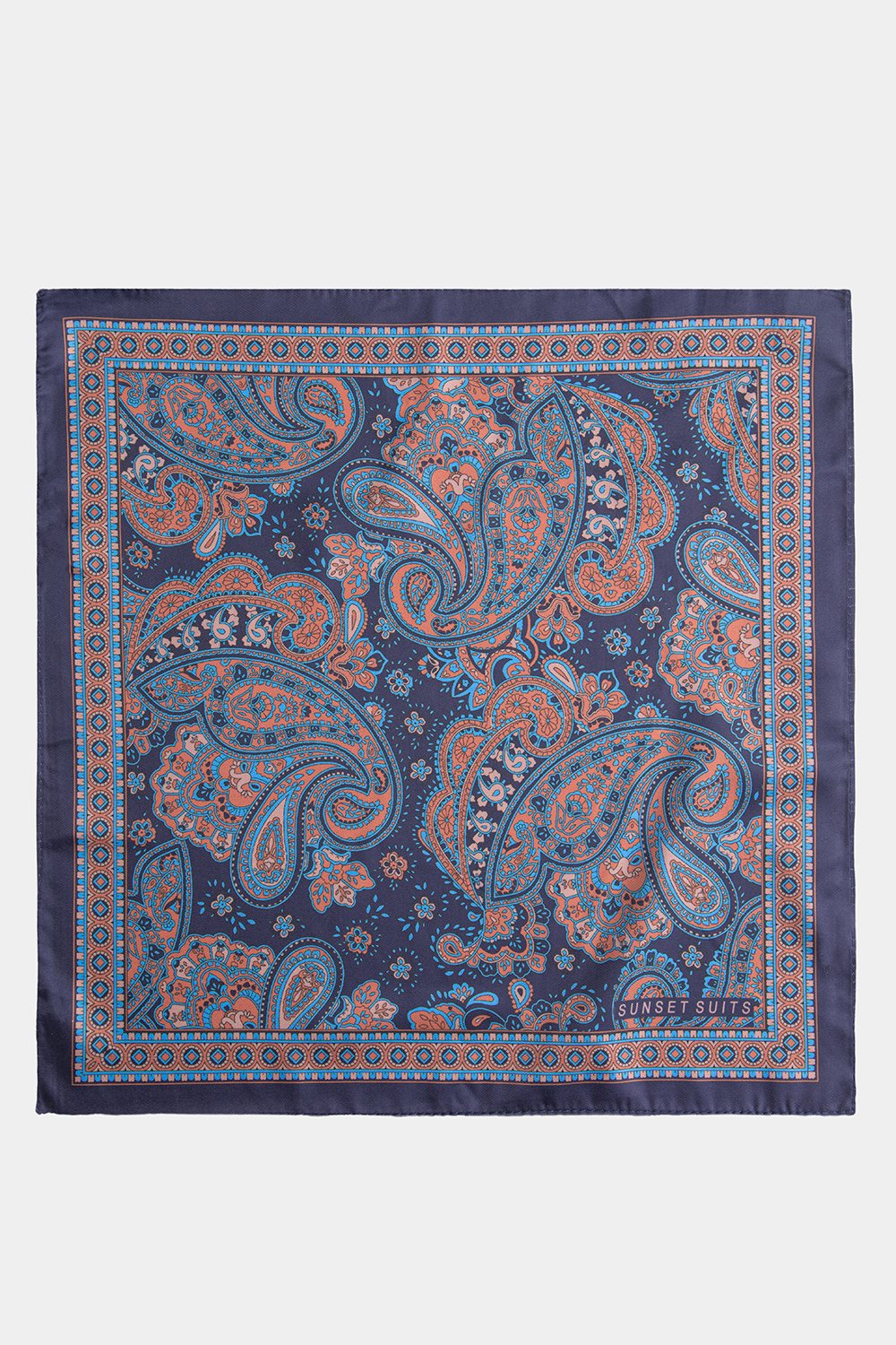 Granatowa poszetka we wzór paisley 00104C99PLA