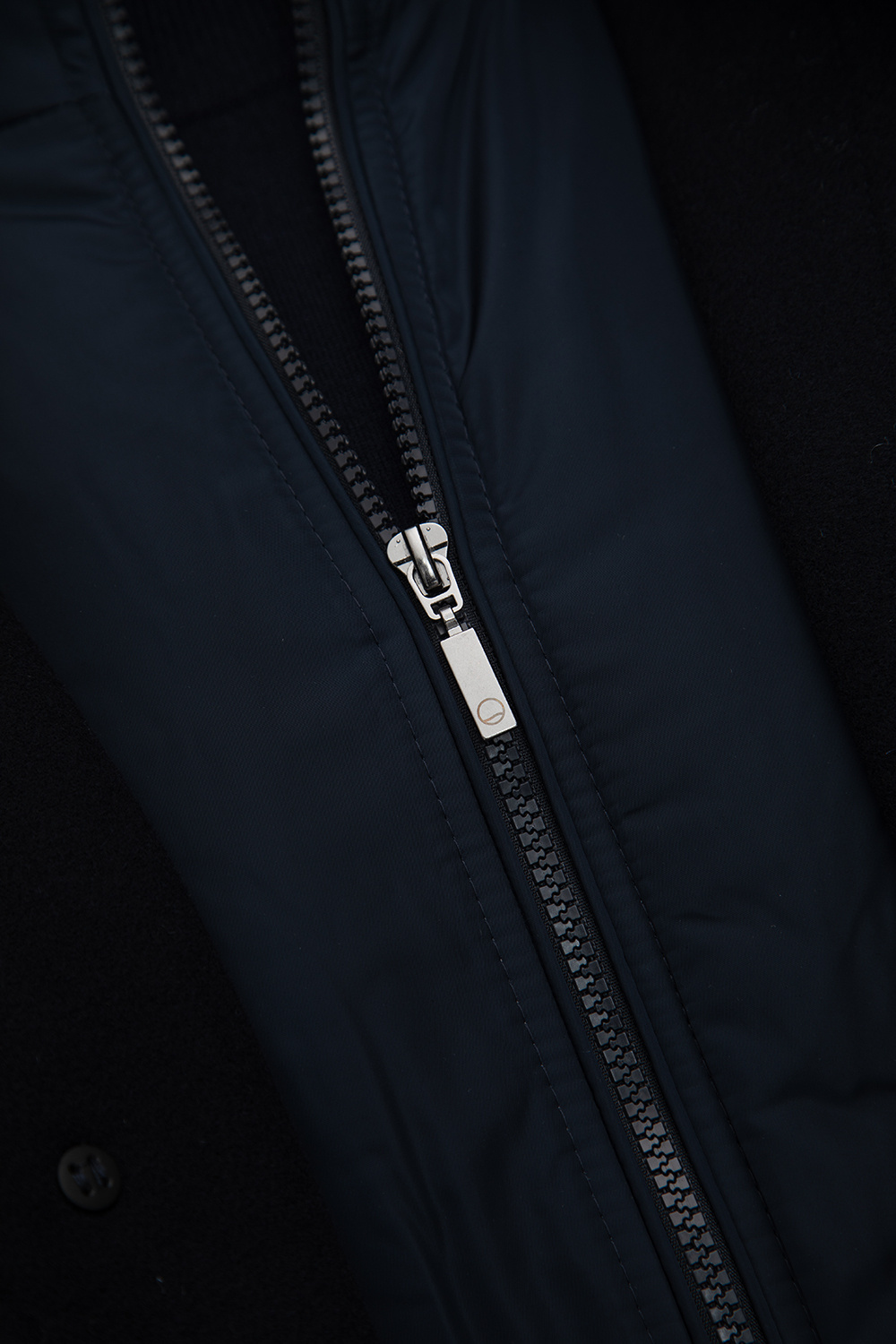Zastosowane w nim zapięcie jednorzędowe – eleganckie guziki w stonowanym połysku oraz ukryty zamek błyskawiczny – podkreśla dopracowany charakter projektu i zwiększa praktyczność noszenia. Wnętrze wykończono gładką podszewką z poliestru, która zapewnia wygodę oraz dodatkową warstwę ochronną przed chłodem.
