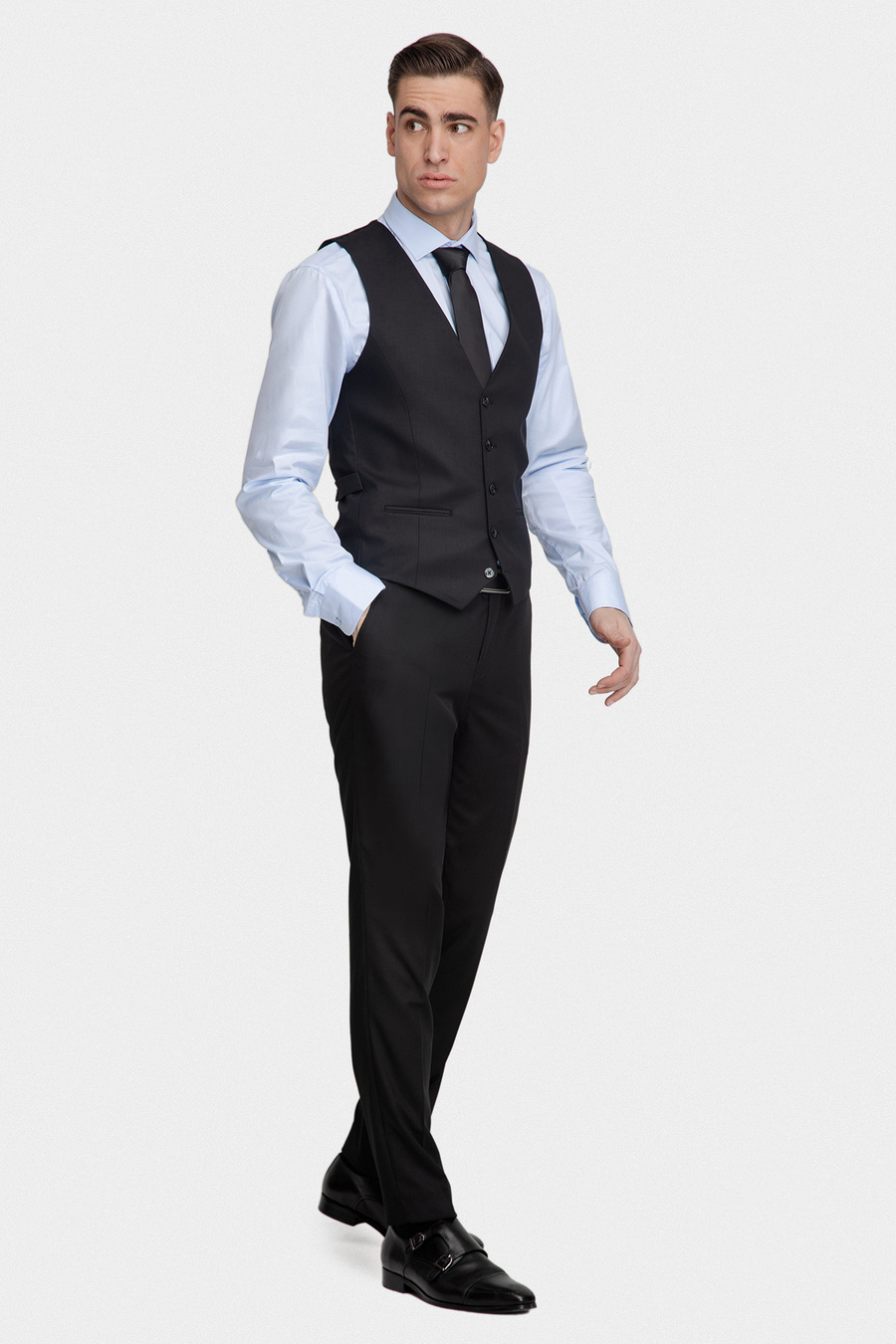 Wykonana z tej samej wysokiej jakości mieszanki tkanin co marynarka, zapewnia komfort noszenia oraz estetyczny, dopracowany wygląd przez cały dzień. Materiał jest miękki, elastyczny i przyjemny w dotyku, a przy tym odporny na zagniecenia i łatwy w pielęgnacji, co czyni kamizelkę wyjątkowo praktycznym elementem garderoby.